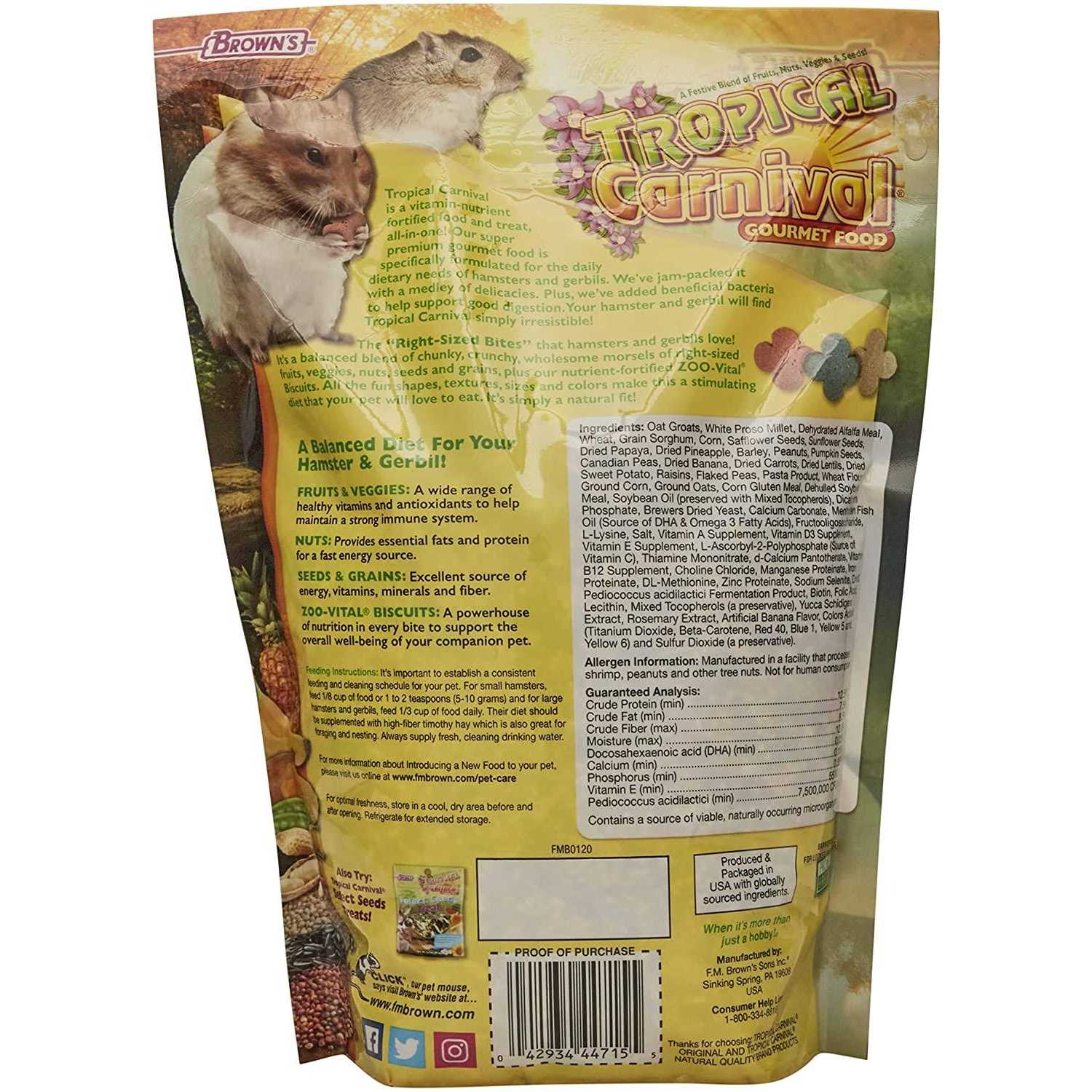 Brown's Tropical Carnival Gourmet Hamster & Gerbil Food - Pet Supplies online store