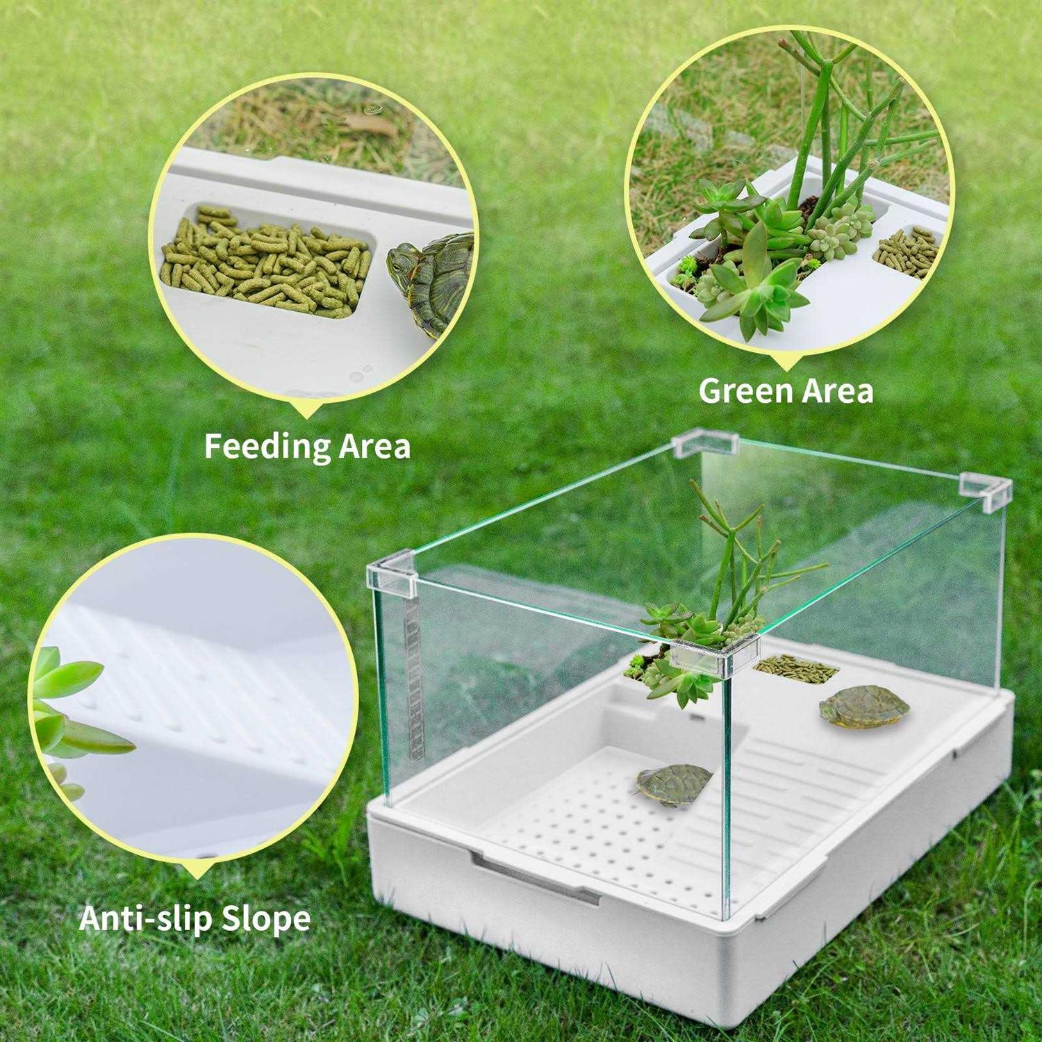 Turtle Tank Habitat Acrylic Aquatic Tortoise Aquarium Starter Kit with Multi-Function Area - Pet Supplies online store