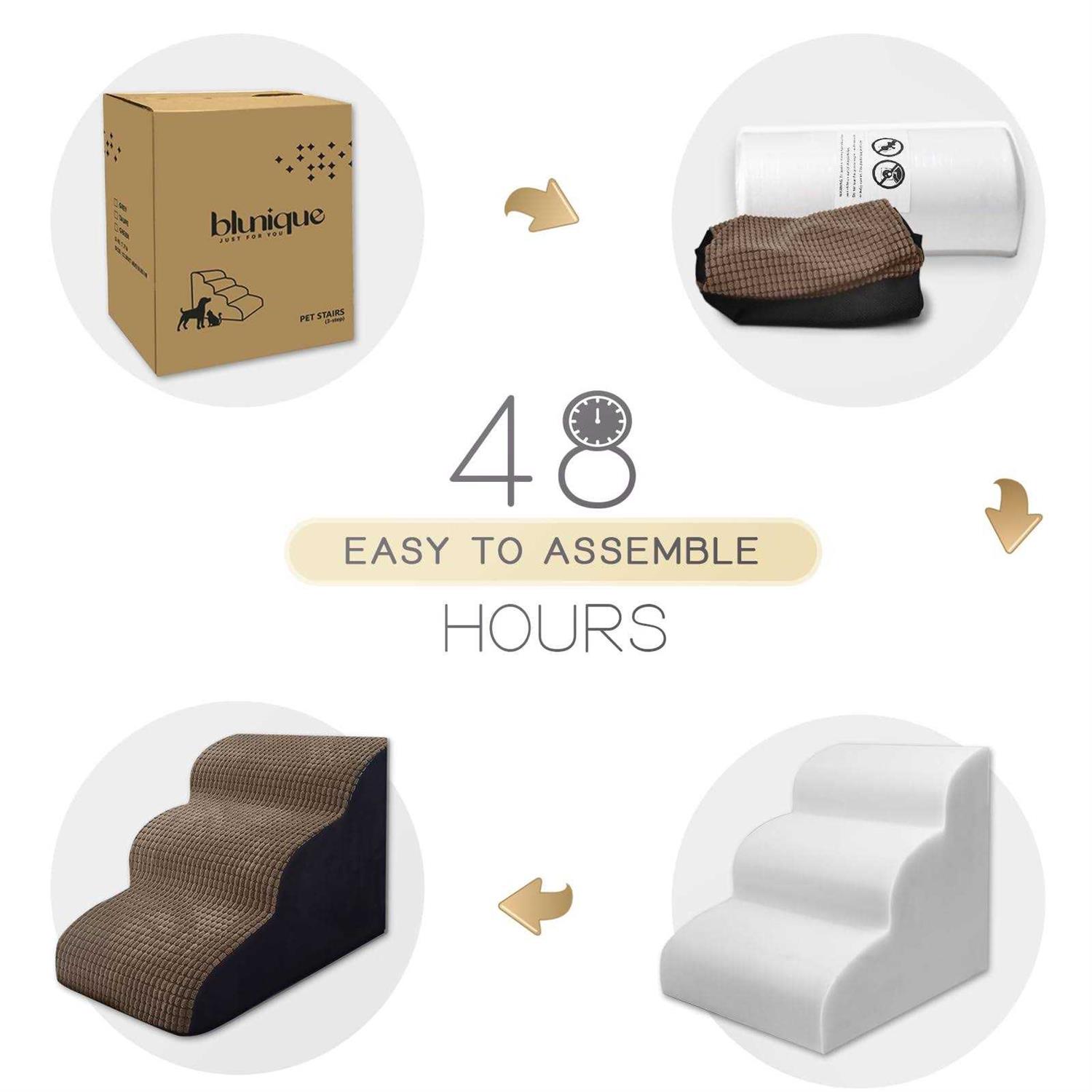 blunique Dog Steps for High Bed 4-Step Dog Ramps for Small Dogs Dog Stairs to Bed Pet Stairs for Couch Corduroy Non-Slip High Density Foam Pet - Pet Supplies online store