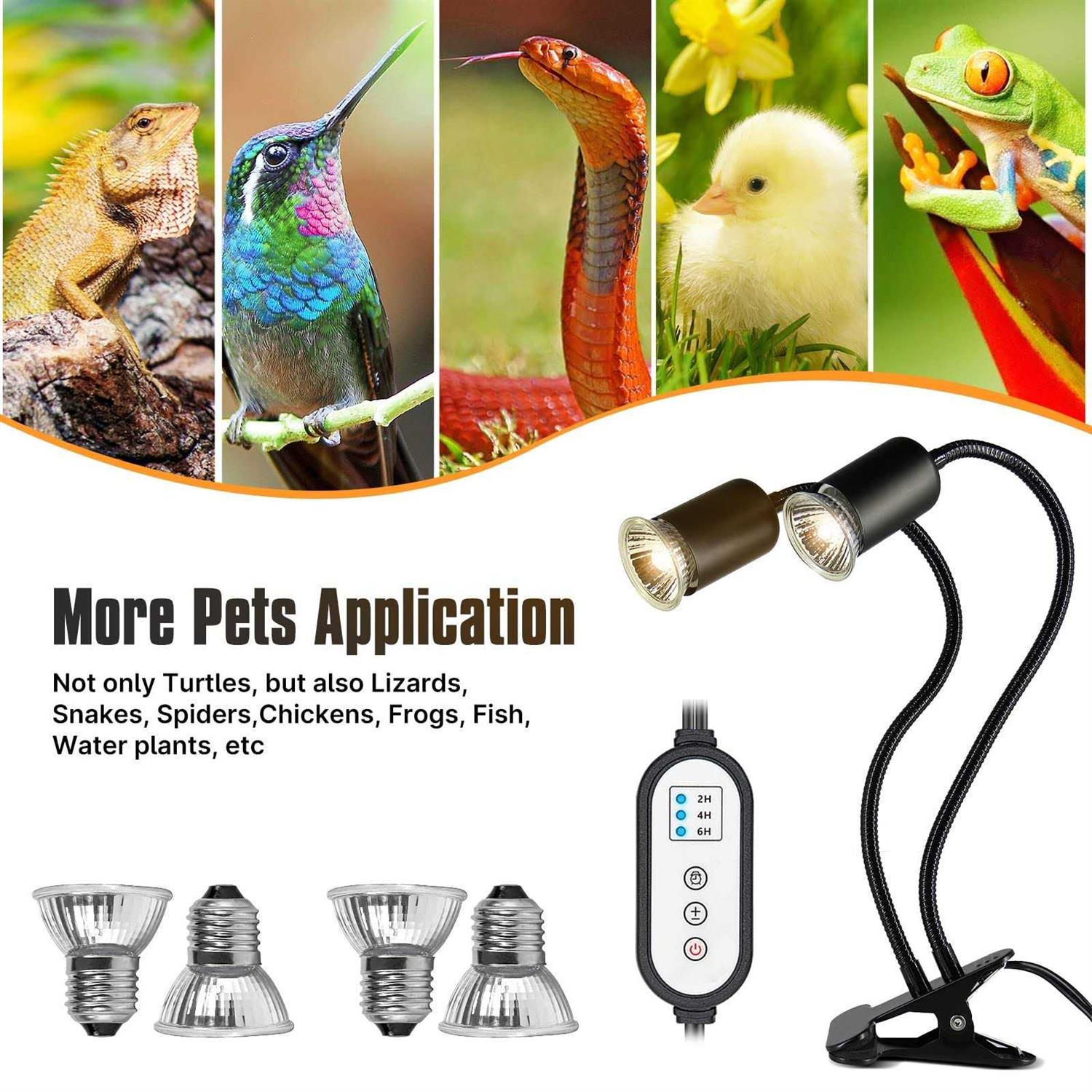 DTZY Reptile Heat Lamp Dual-Head UVA/B Reptile Light With Cycle Timer - Pet Supplies online store