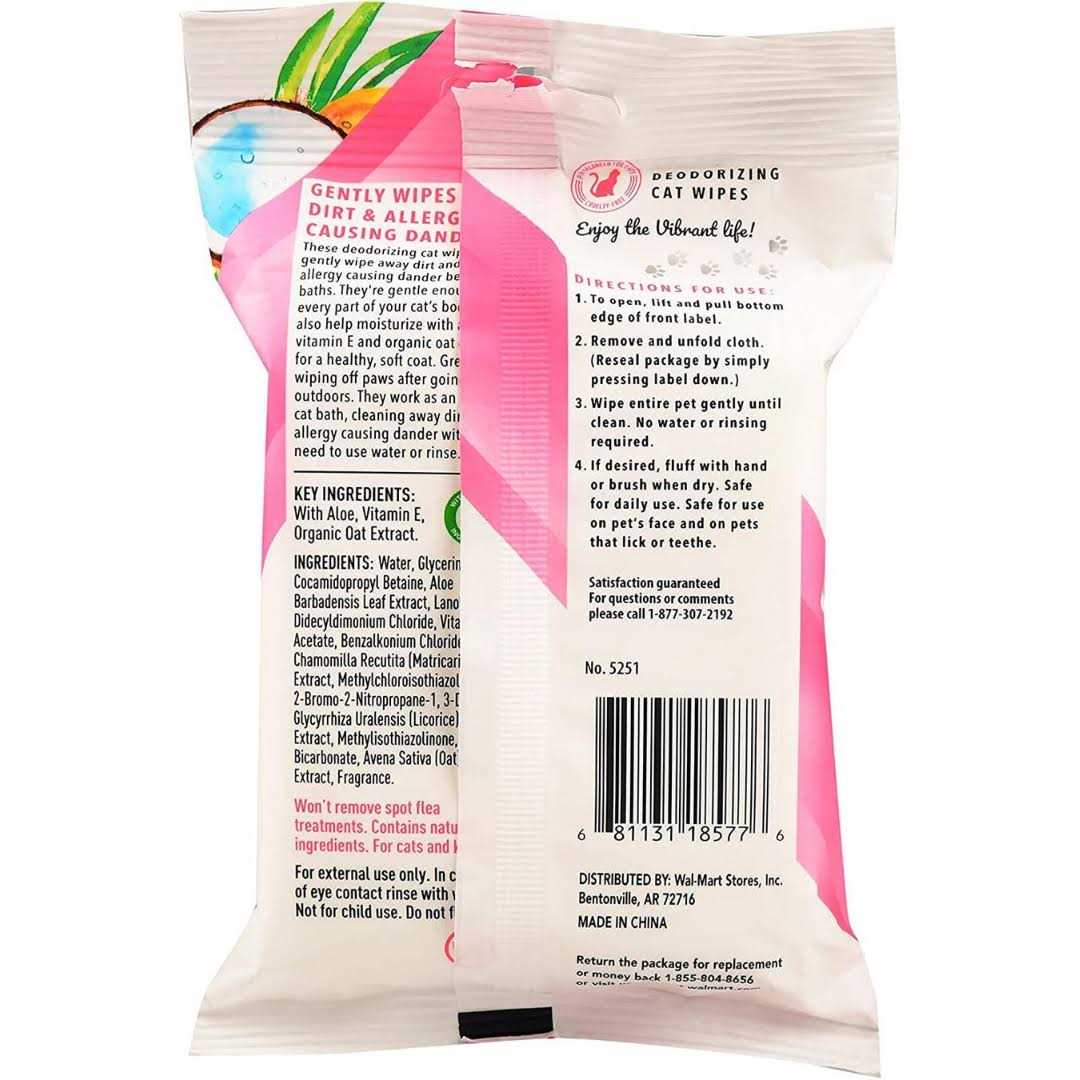 Vibrant Life Vanilla Coconut Deodorizing Wipes for Cats & Kittens - Pet Supplies online store