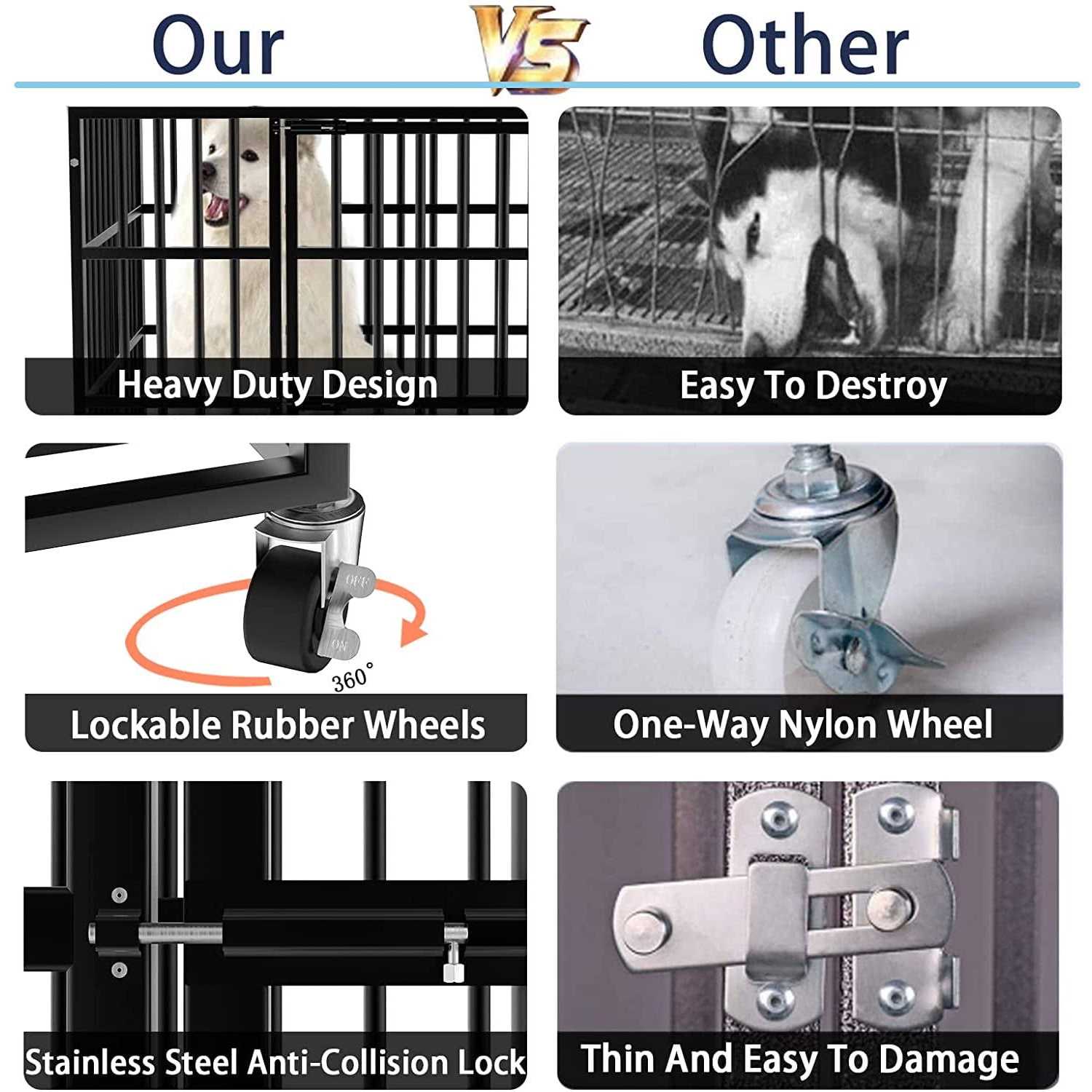 Vitesse Heavy Duty Indestructible high Anxiety Dog Crate cage for Outdoor and Indoor with Removable Tray - Pet Supplies online store