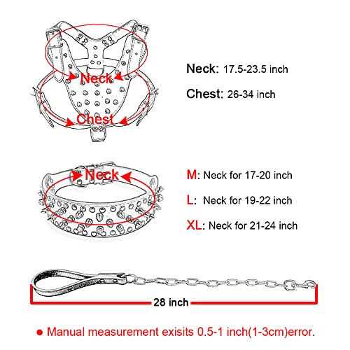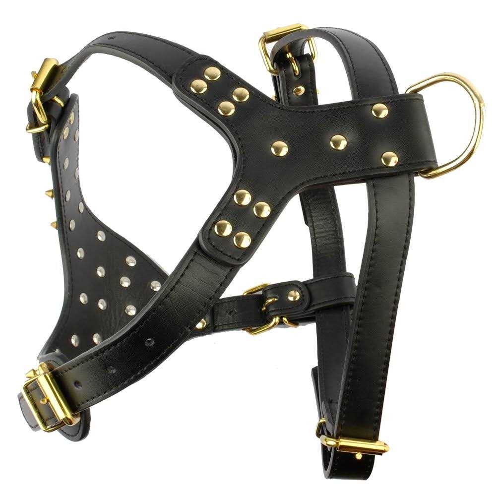 Berry Pet Black Leather Spikes Studded Medium & Large Dog Collar & Leash & Harness 3 Pcs Set for Pitbull Boxer - Pet Supplies online store