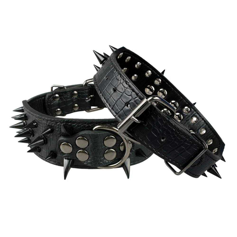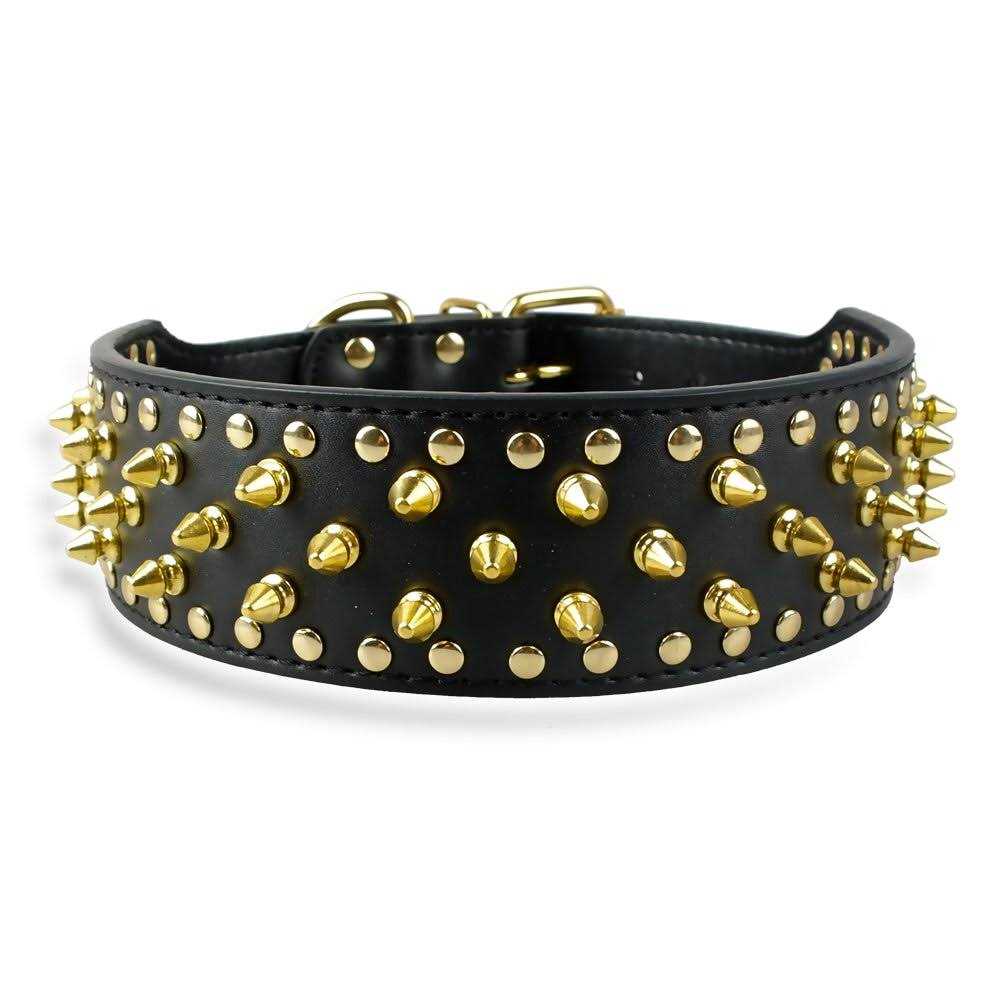 Berry Pet Sharp Spiked Studded Dog Collar Stylish Leather Dog Collars 2 Inch in Width Fit for Medium & Large Dogs - Pet Supplies online store