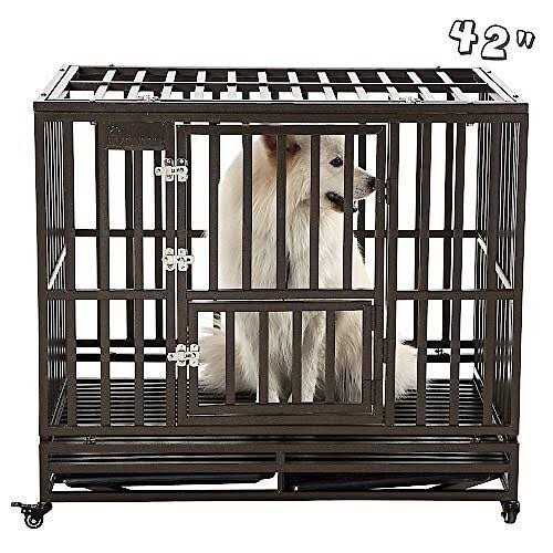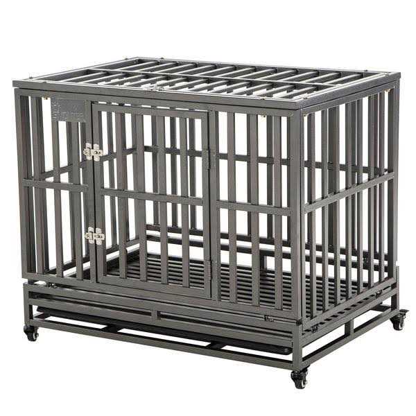 SMONTER Heavy Duty I Shape Dog Crate, Silver, 38-in - Pet Supplies online store