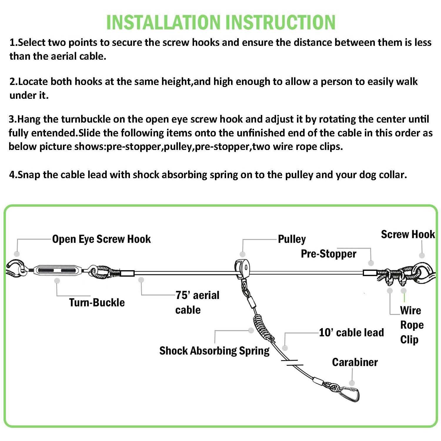 Snagle Paw Dog Tie Out Runner for Yard,Trolley System for Large Dogs Dog Aerial Cable with 10ft Pulley Runner Line for Dogs Up - Pet Supplies online store