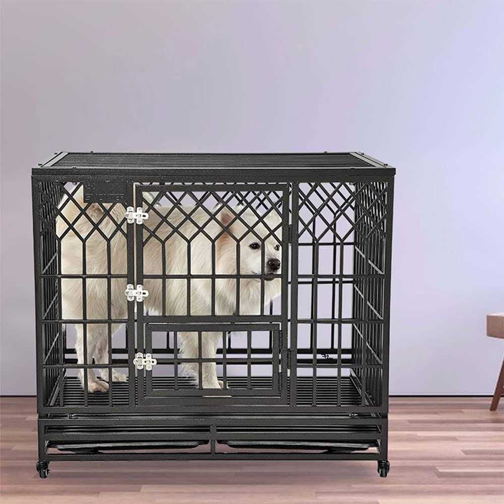 SMONTER Heavy Duty Strong Metal Dog Cage Pet Kennel Crate Playpen Wheels - Pet Supplies online store