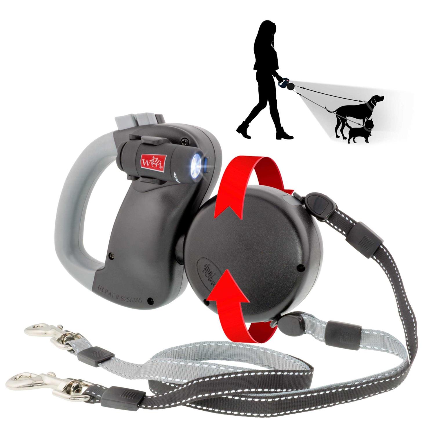 Wigzi Dual Doggie Retractable Leash with Light No Tangle 360 Coupler - Pet Supplies online store