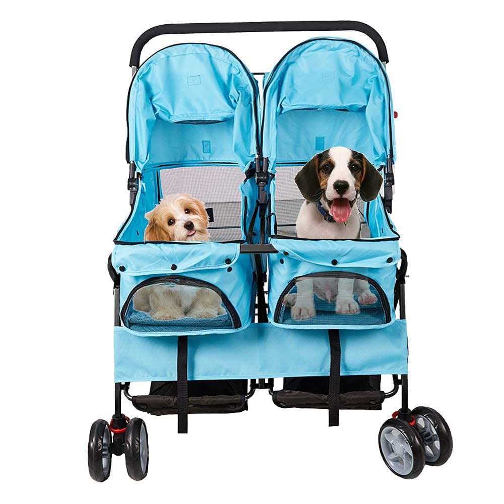 Dporticus Double Pet Stroller Foldable Stroller for 2 Dogs Cats Two-Seater Carrier Strolling Cart for Dog Cat and More Multiple Colors - Pet Supplies online store