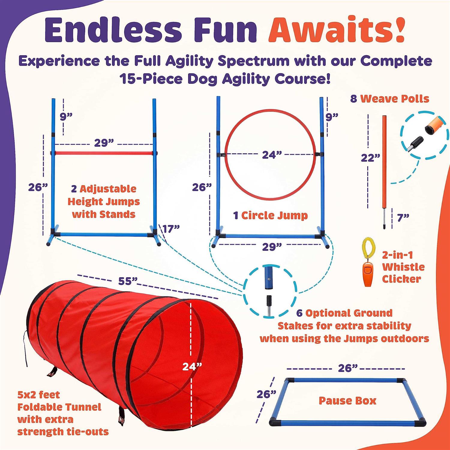 Willow Pet Products 15 Piece Dog Agility Course Backyard Set Dog Agility Training Equipment Set Includes - Pet Supplies online store