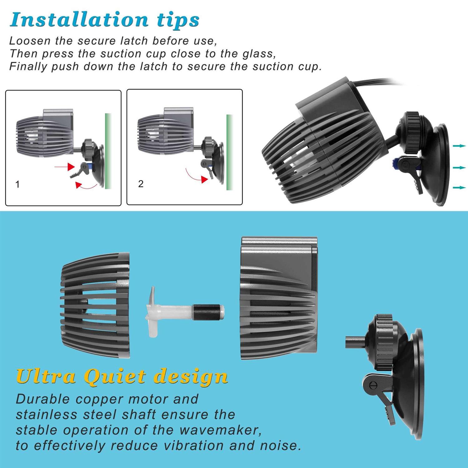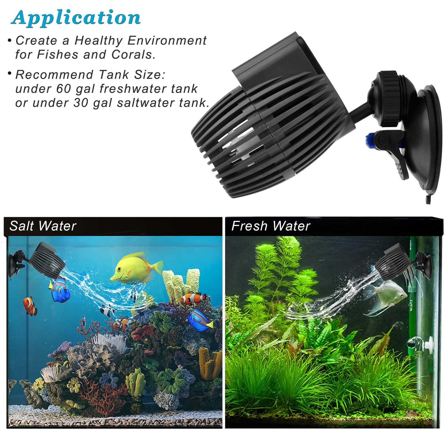 DOMICA Aquarium Wave Maker Powerhead 480GPH 3W, Submersible Power Head Pump with Suction Base, Water Circulation for Freshwater or Saltwater Fish - Pet Supplies online store