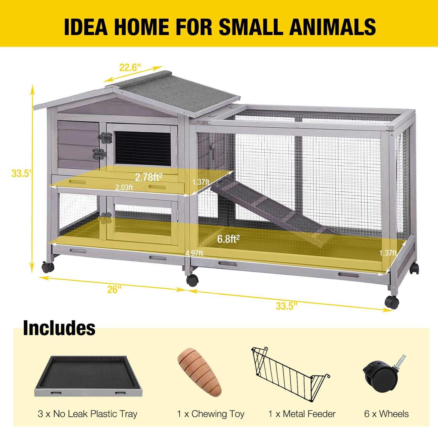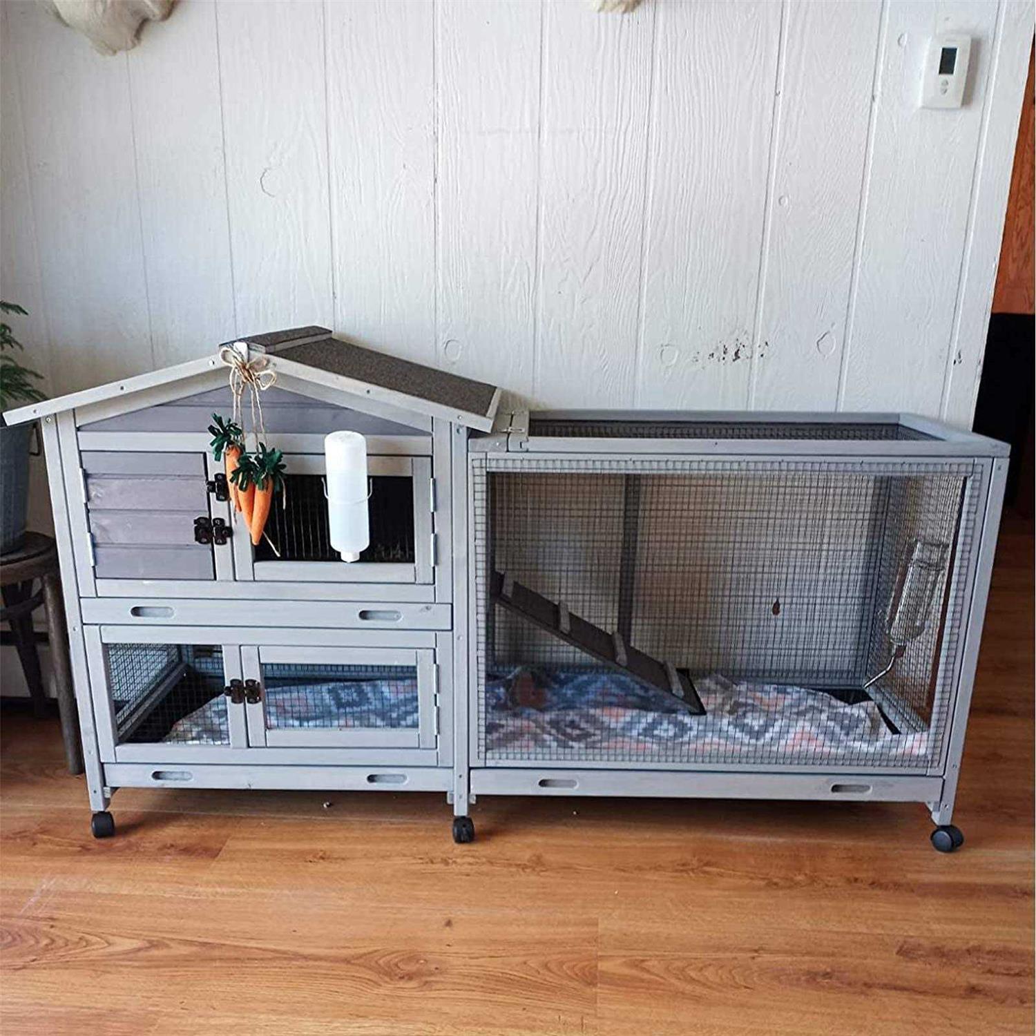 Aivituvin Outdoor Indoor Bunny Hutch with Wheels AIR77 - Pet Supplies online store