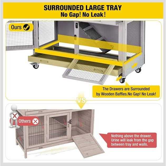 Aivituvin Rabbit Hutch Outdoor Indoor Rabbit Cage Chikcen Coop with Casters Guinea Pig Cage with 3 Deep No Leakage Pull Out Tray - Pet Supplies online store