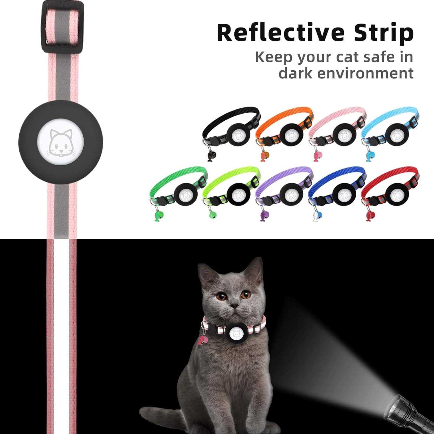 Airtag Cat Collar with Breakaway Bell Reflective Strap with Air Tag Case for Cat Kitten - Pet Supplies online store