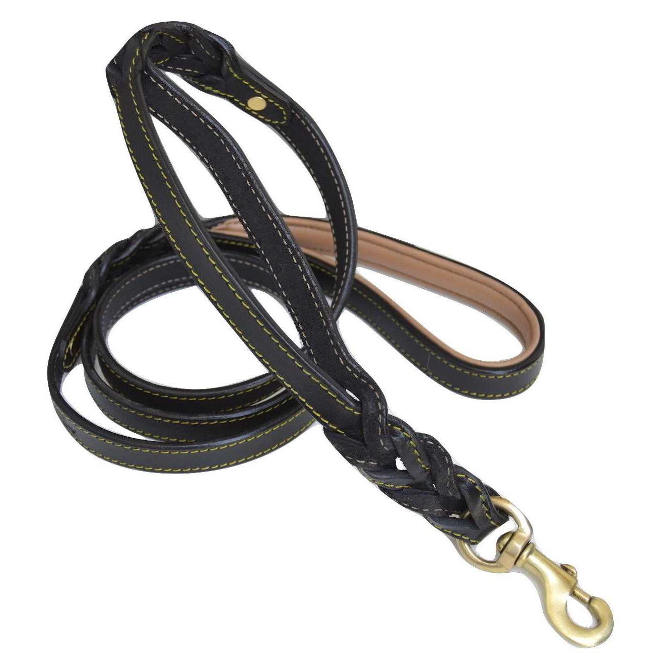 Soft Touch Collars 6 Foot Braided Leather Dog Leash with Traffic Handle, Two Handles for Training and Safety - Pet Supplies online store