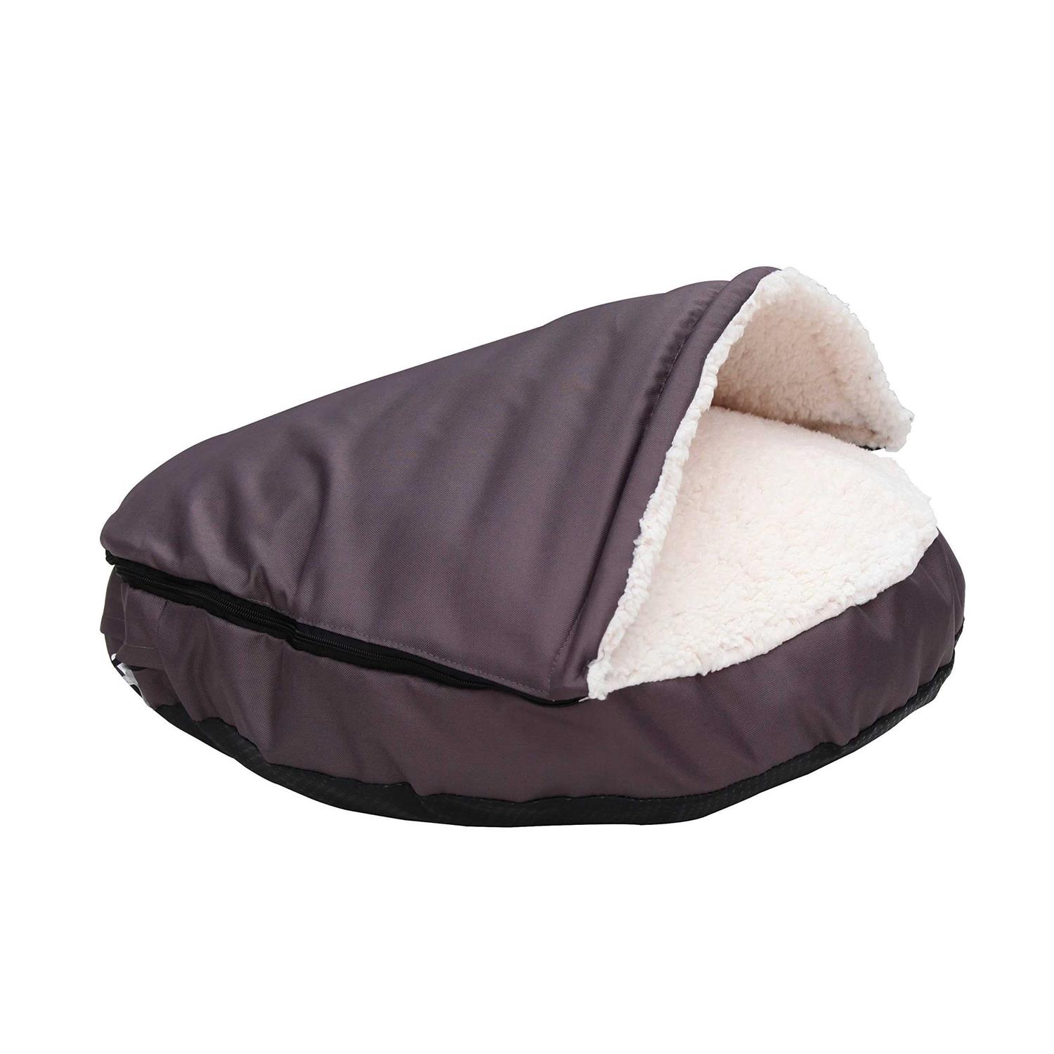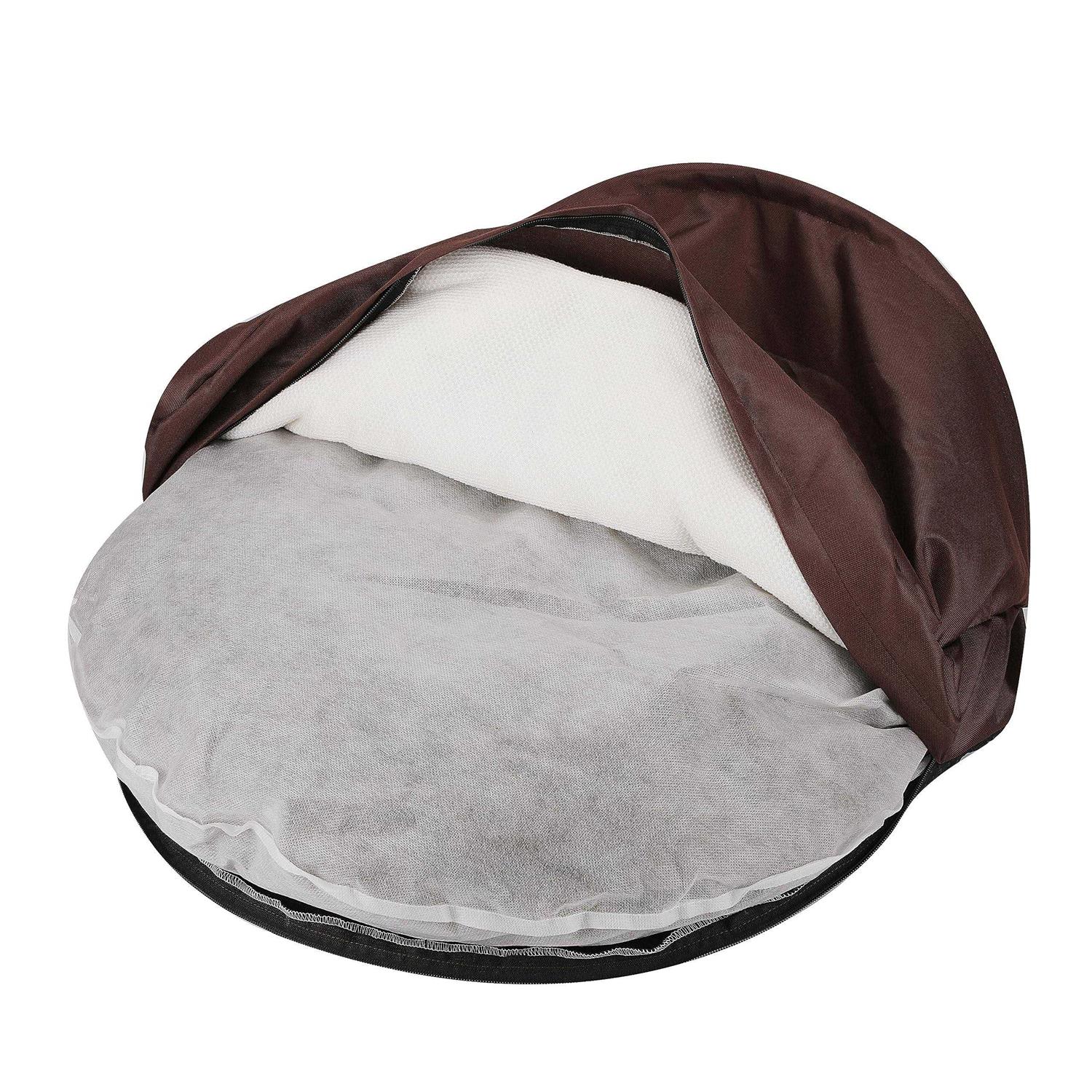 Long Rich Durable Oxford to Sherpa Pet Cave and Round Pet Bed, 25, with Removable Top and Insert - Pet Supplies online store