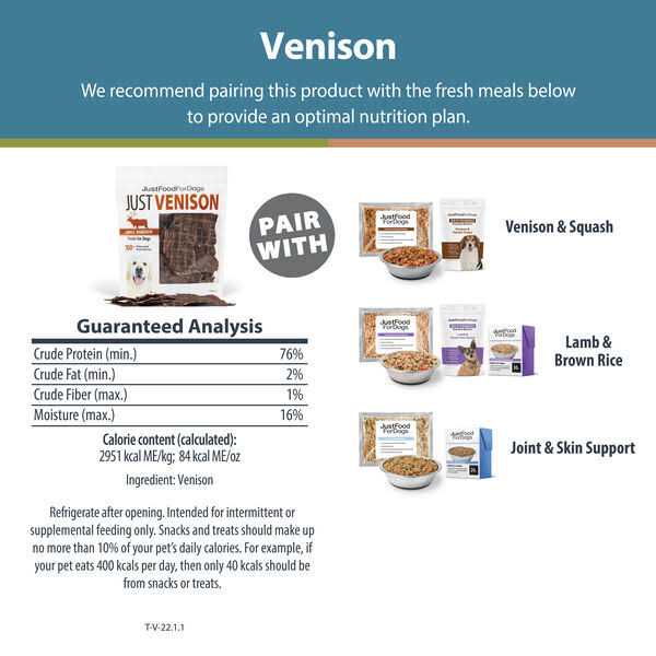 JustFoodForDogs Venison Dehydrated Dog Treats - Pet Supplies online store
