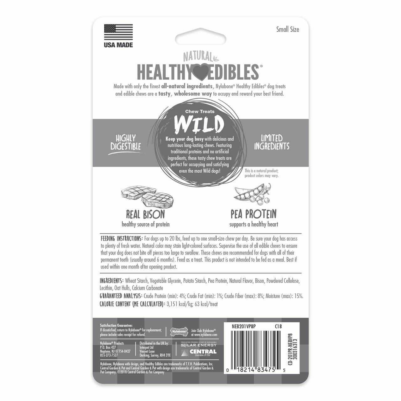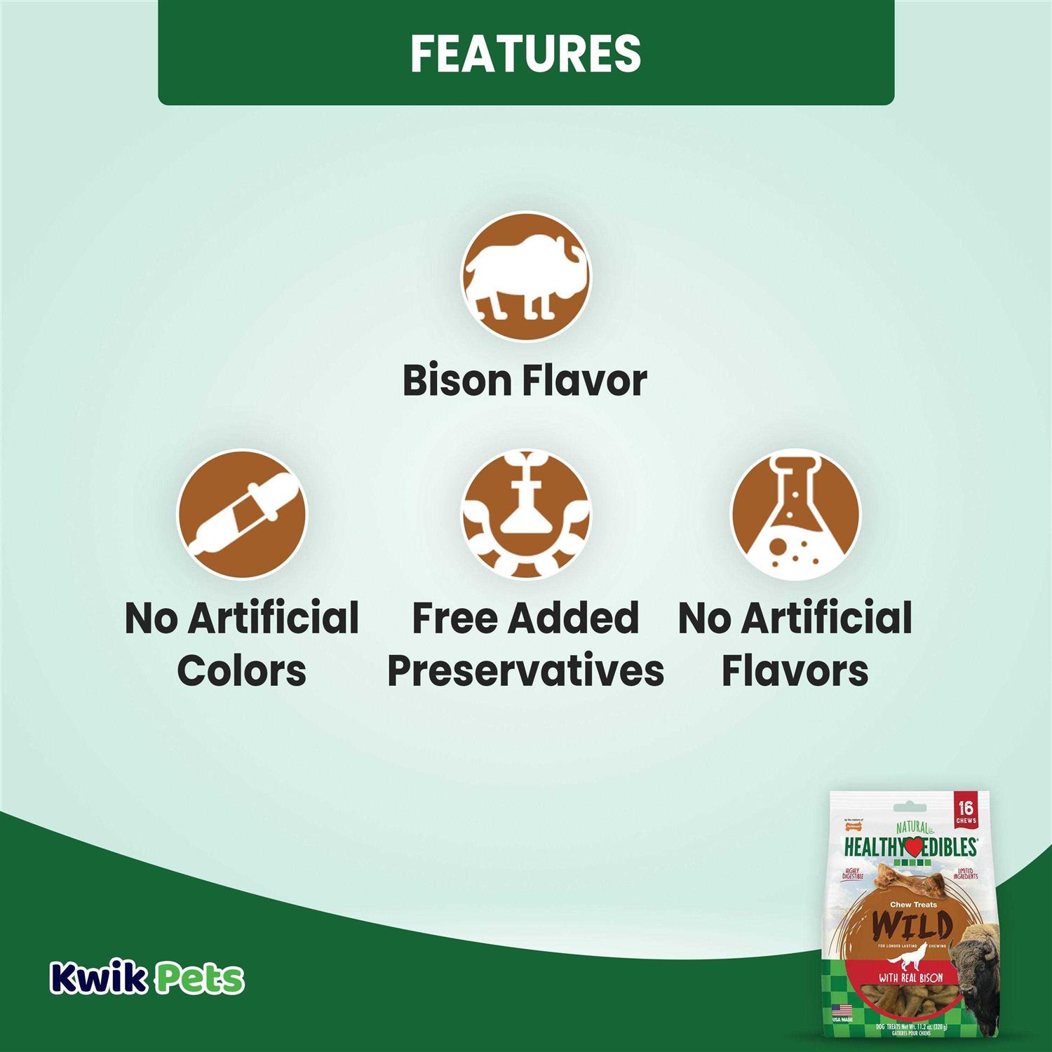 Nylabone Healthy Edibles Wild Natural Bison Chew Treats - Pet Supplies online store