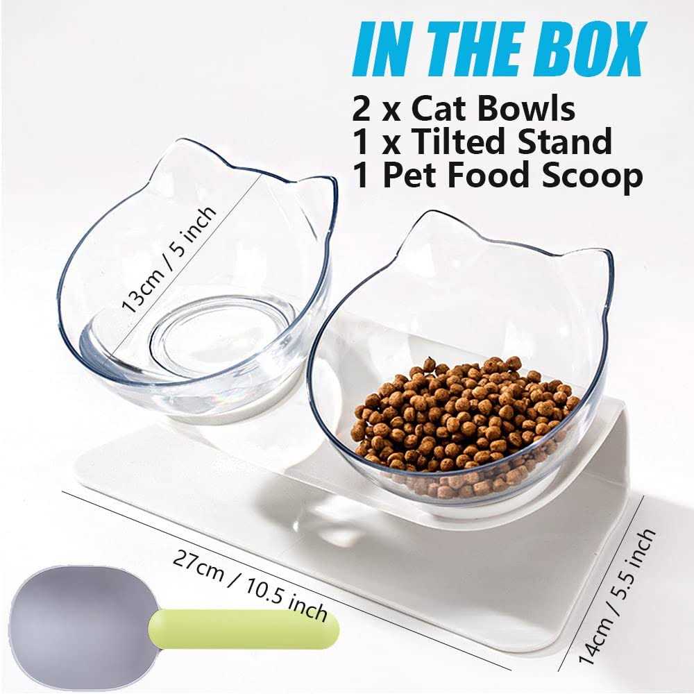 Speedy Panther Raised Cat Bowl with Stand 15 Tilted Cat Bowls for Kittens Elevated Cat Bowl Anti Vomiting Double Cat Bowls Plastic Transparent Cat Feeding Bowl - Pet Supplies online store