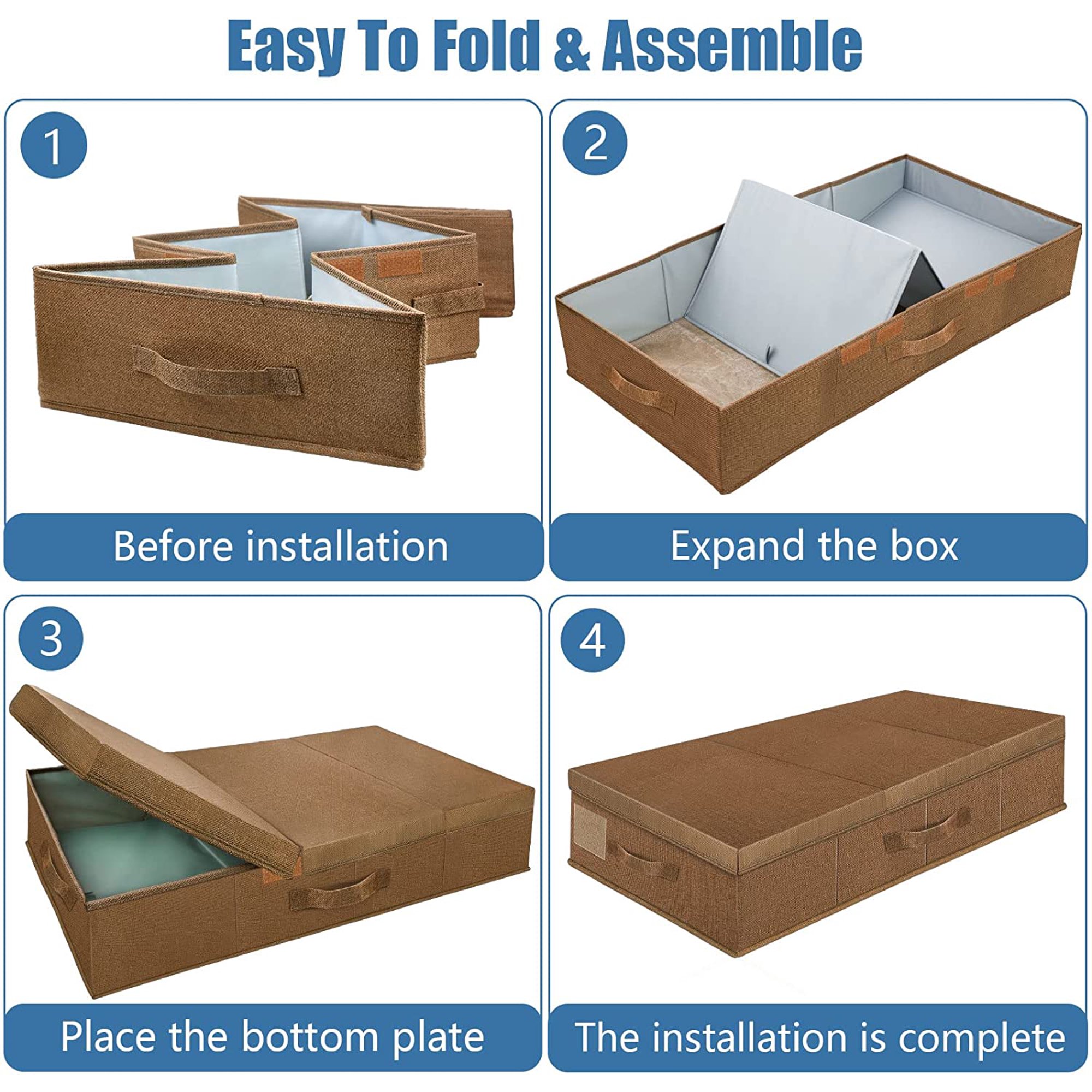 Dust proof under bed storage containers, large capacity closet organizers, ideal for clothes, toys, bedding, bedroom storage solution, gray, 4 pack