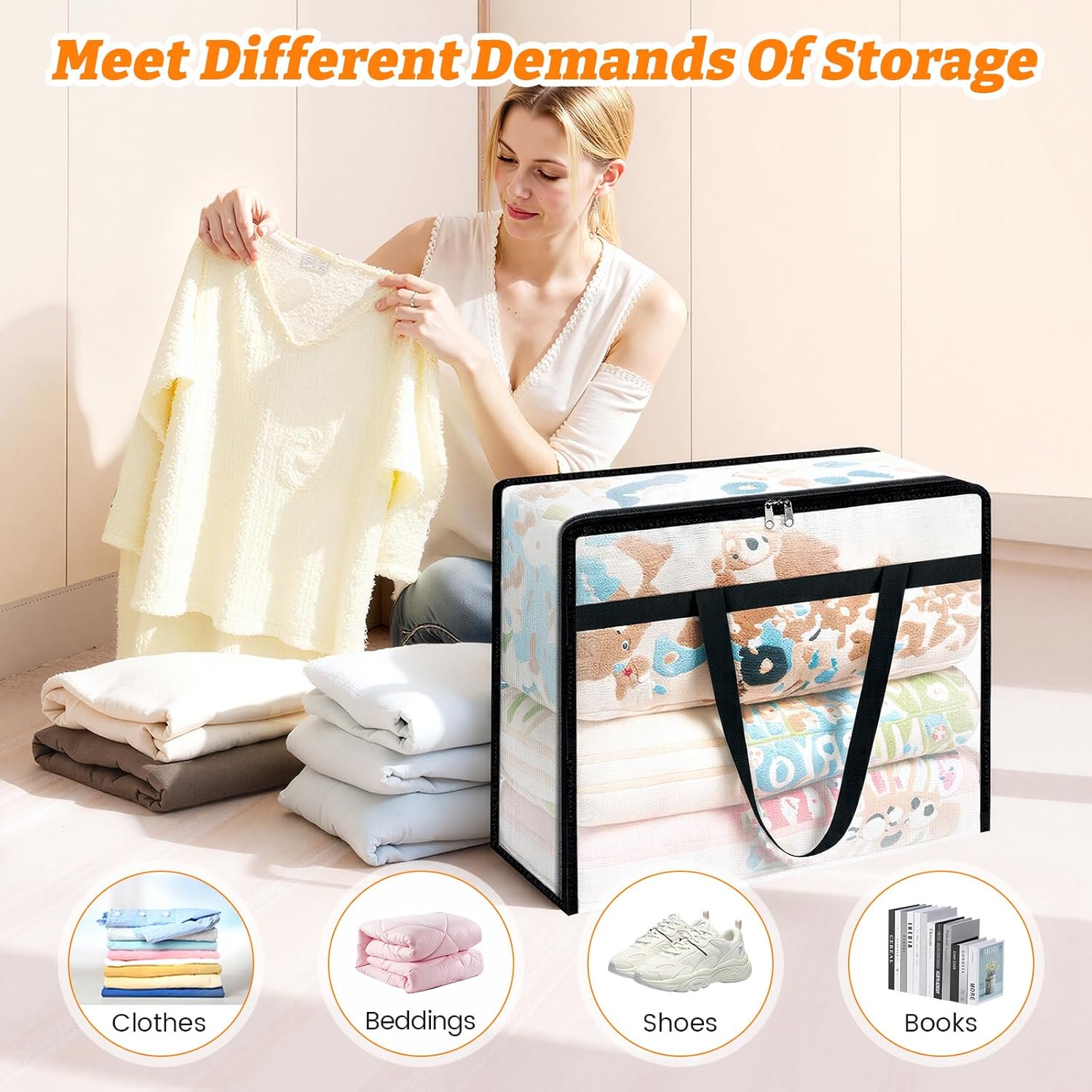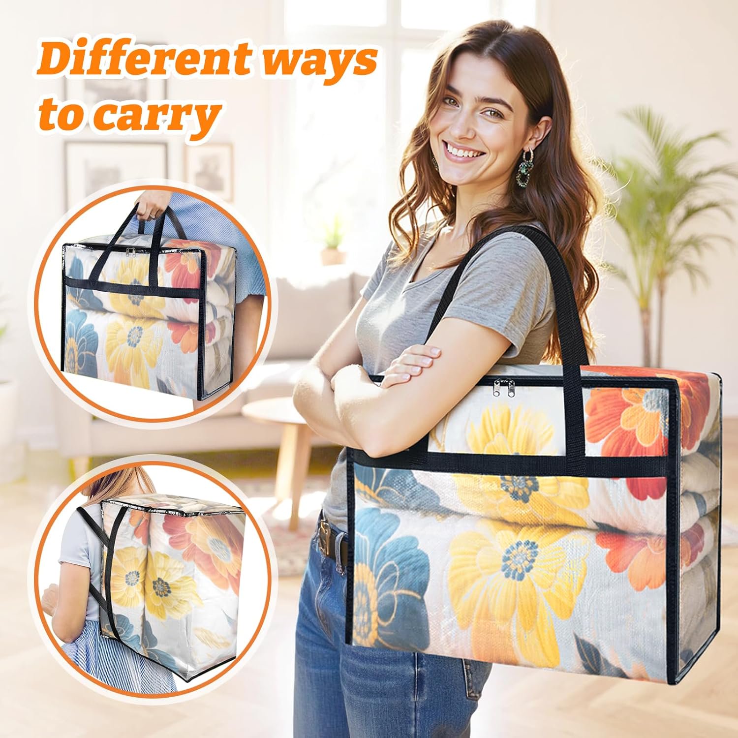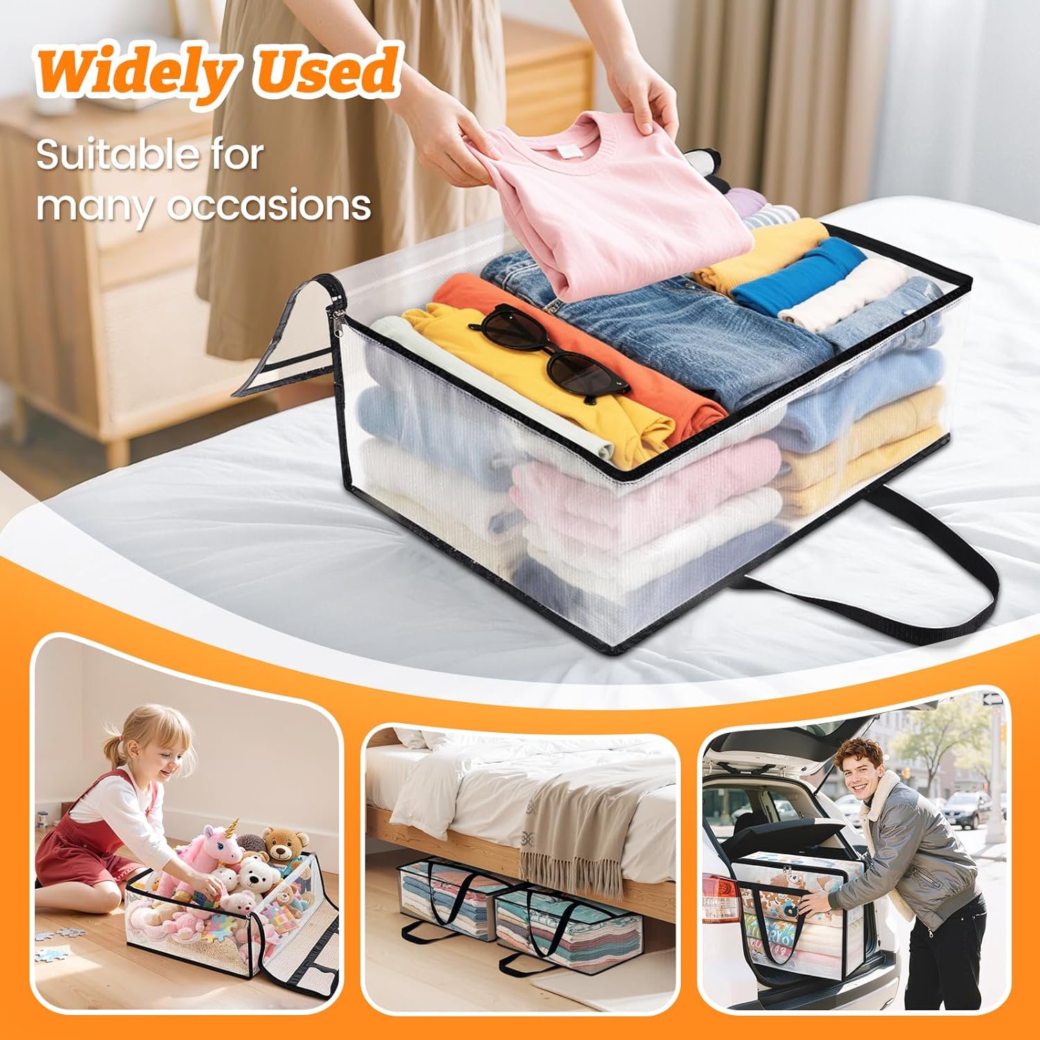 4 Pack Clear Clothes Storage Bags, Moving Bags, Foldable Blanket Storage Under Bed Storage Containers with Sturdy Zipper and Handle for Clothing, Comforter, Bedding, Sheet (40L)