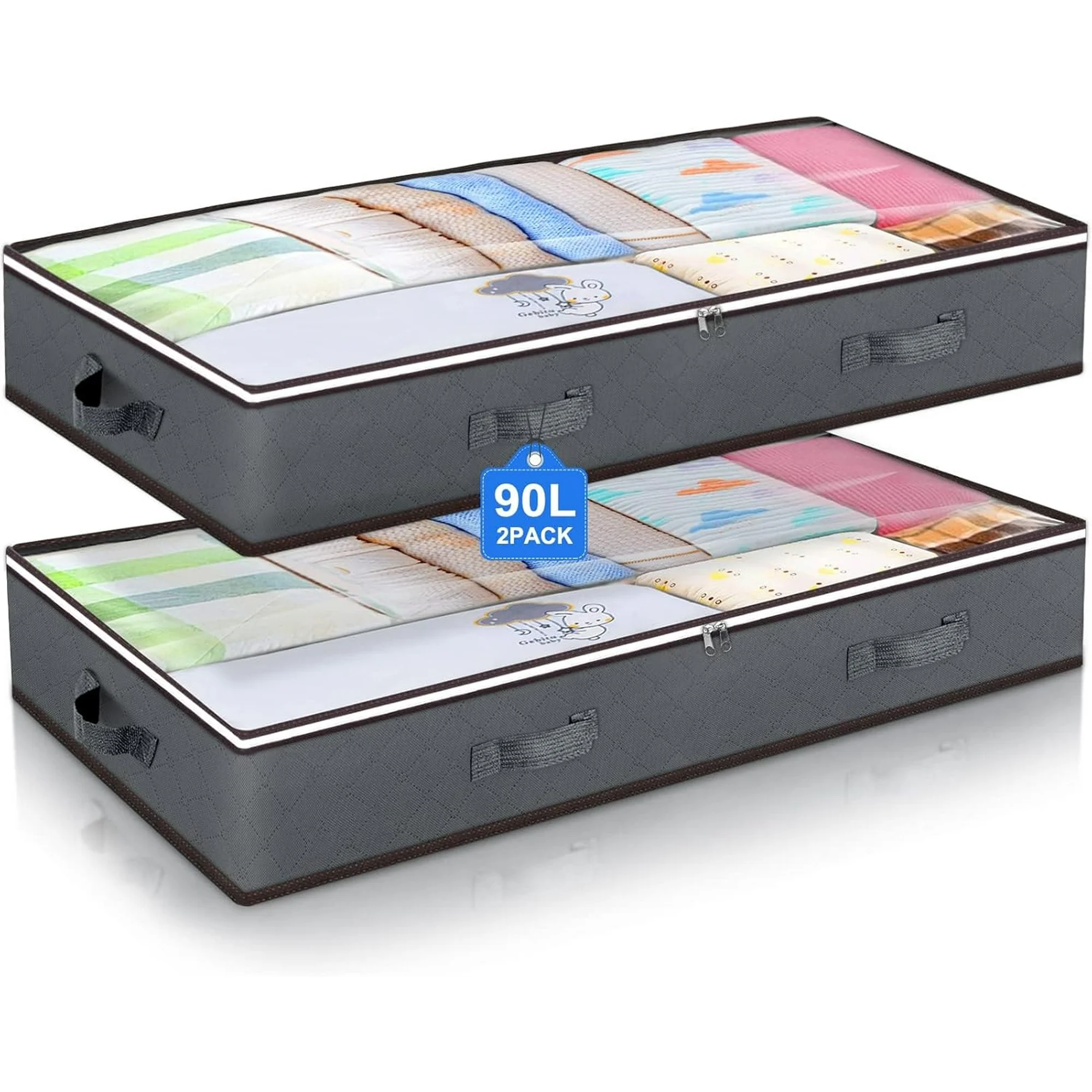 Budding Joy 90L Under Bed Storage Containers, Closet Organizers and Storage Bins, Foldable Underbed Storage Bags for Blanket, Clothing, Comforter, Sweaters, Pillows,