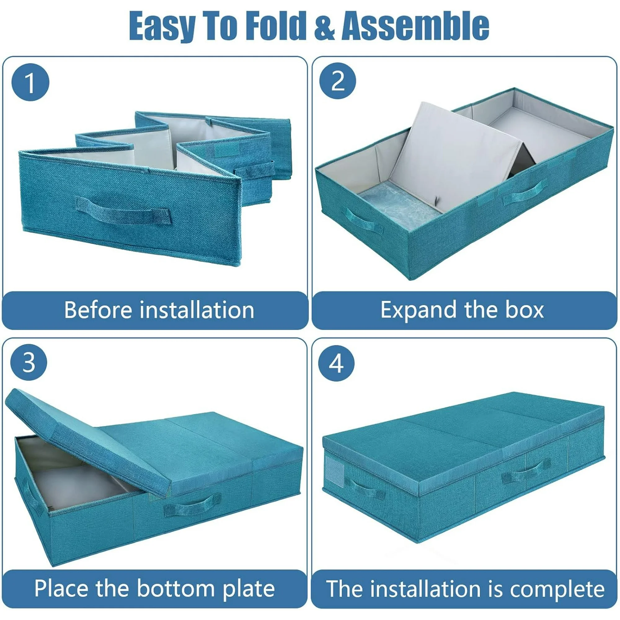 Underbed Storage Containers Bin with Lids (2pcs) Large Under Bed Storage Organizer Box with Handle, Foldable Under the Storage Bags for Organizing Clothes, Shoes, Blankets, Pillows-Cyan blue