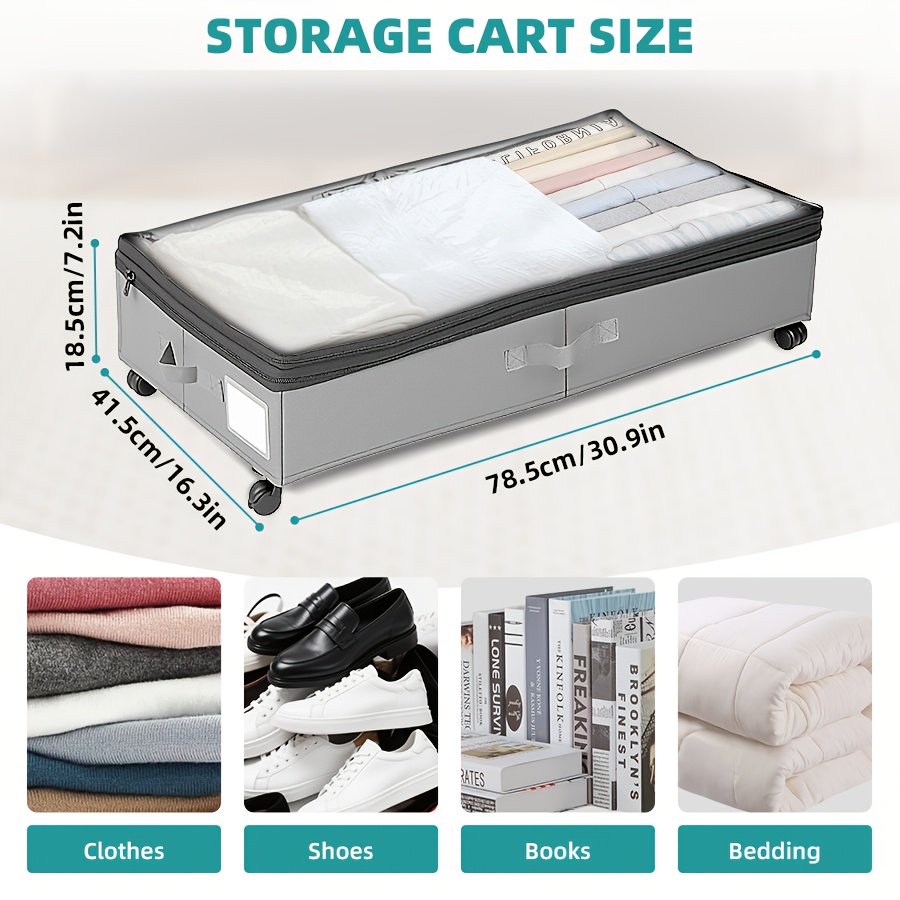 2pcs Underbed Storage Containers with Wheels & Lids - Low Profile Oxford Fabric Organizers for Clothes Shoes Toys Linens, Space-Saving Gray Under Bed Storage Bags