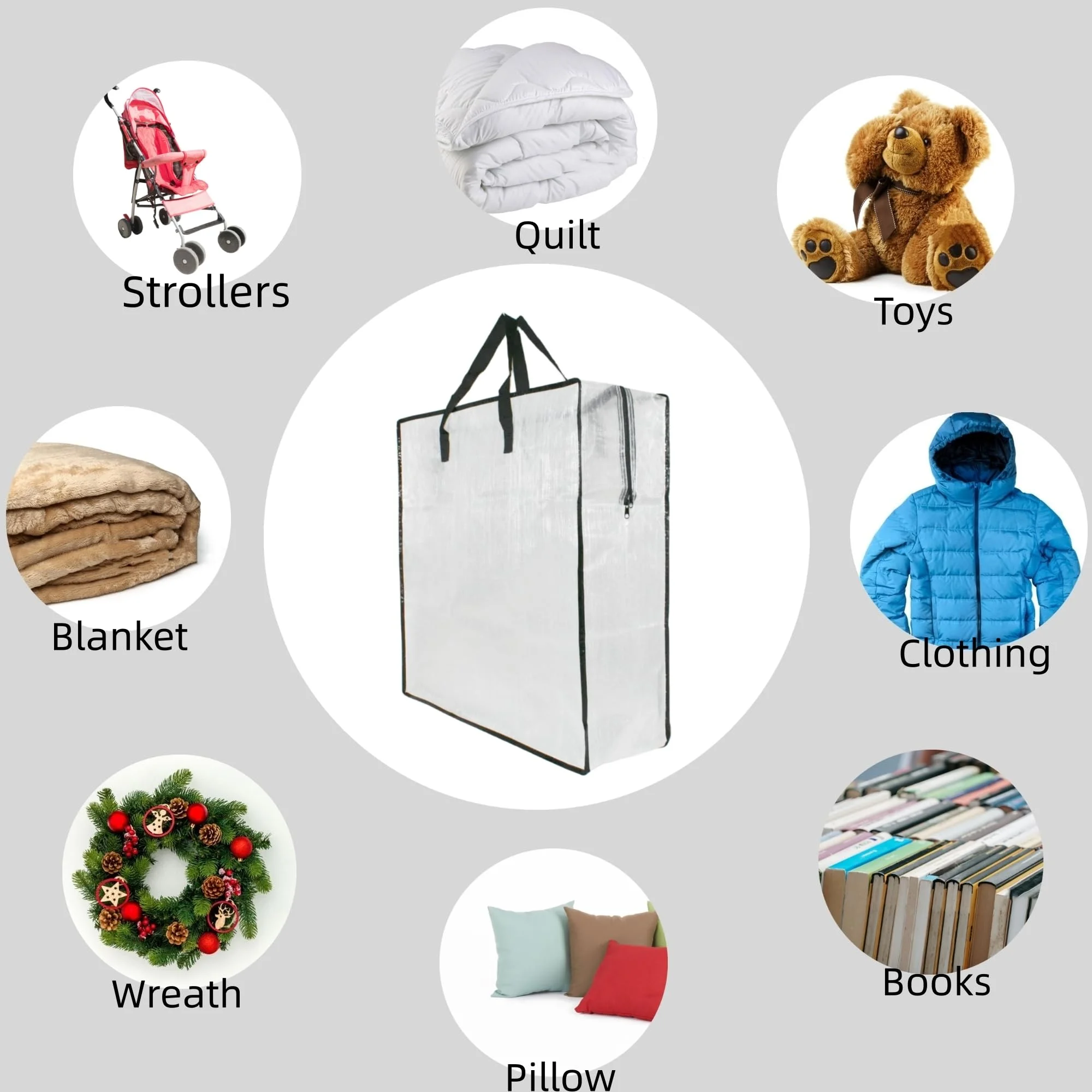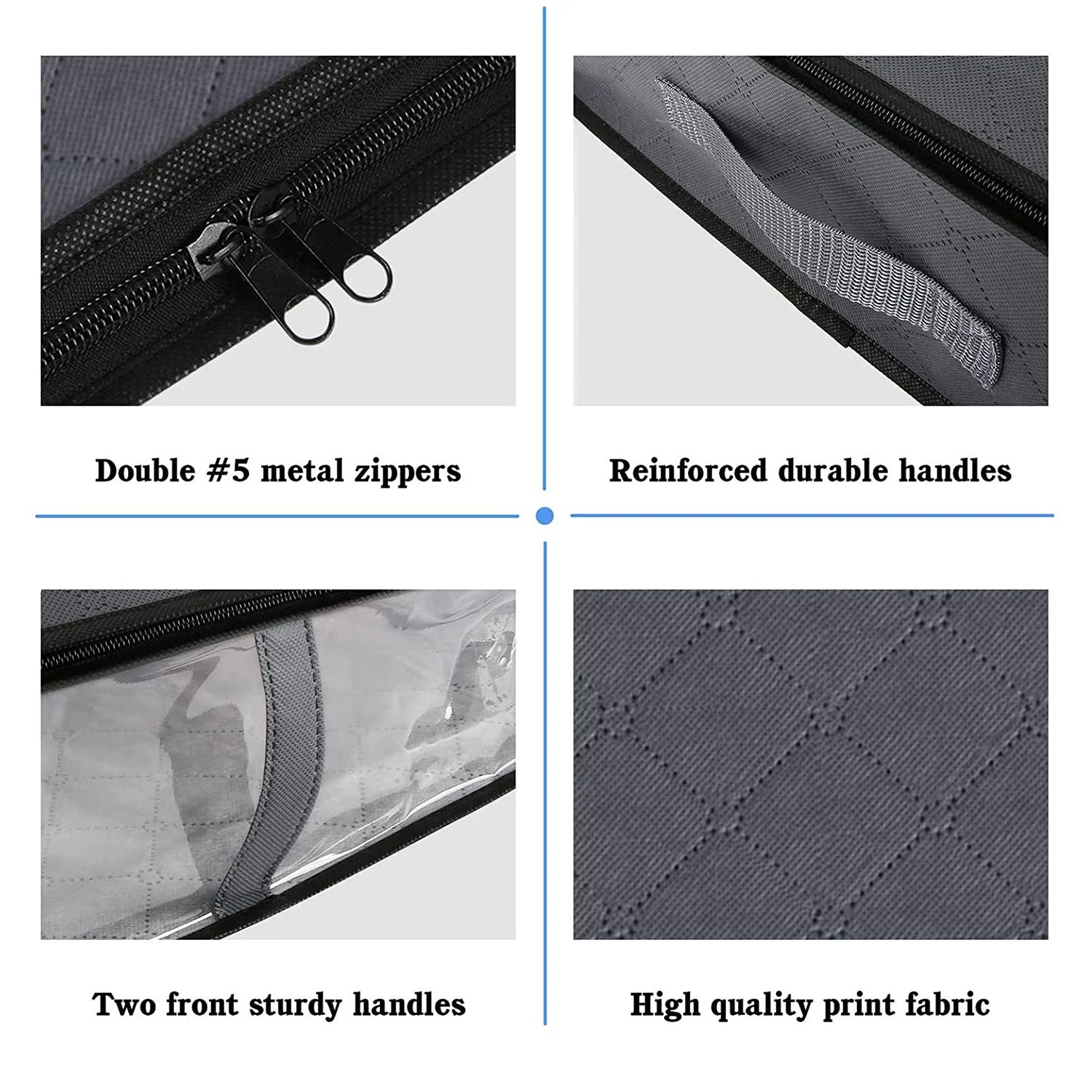 Clear Zippered Storage Bags with Handles, Heavy Duty Moving Organizer for Clothes Blankets Bedding, Space Saving Underbed Closet Storage, Gray