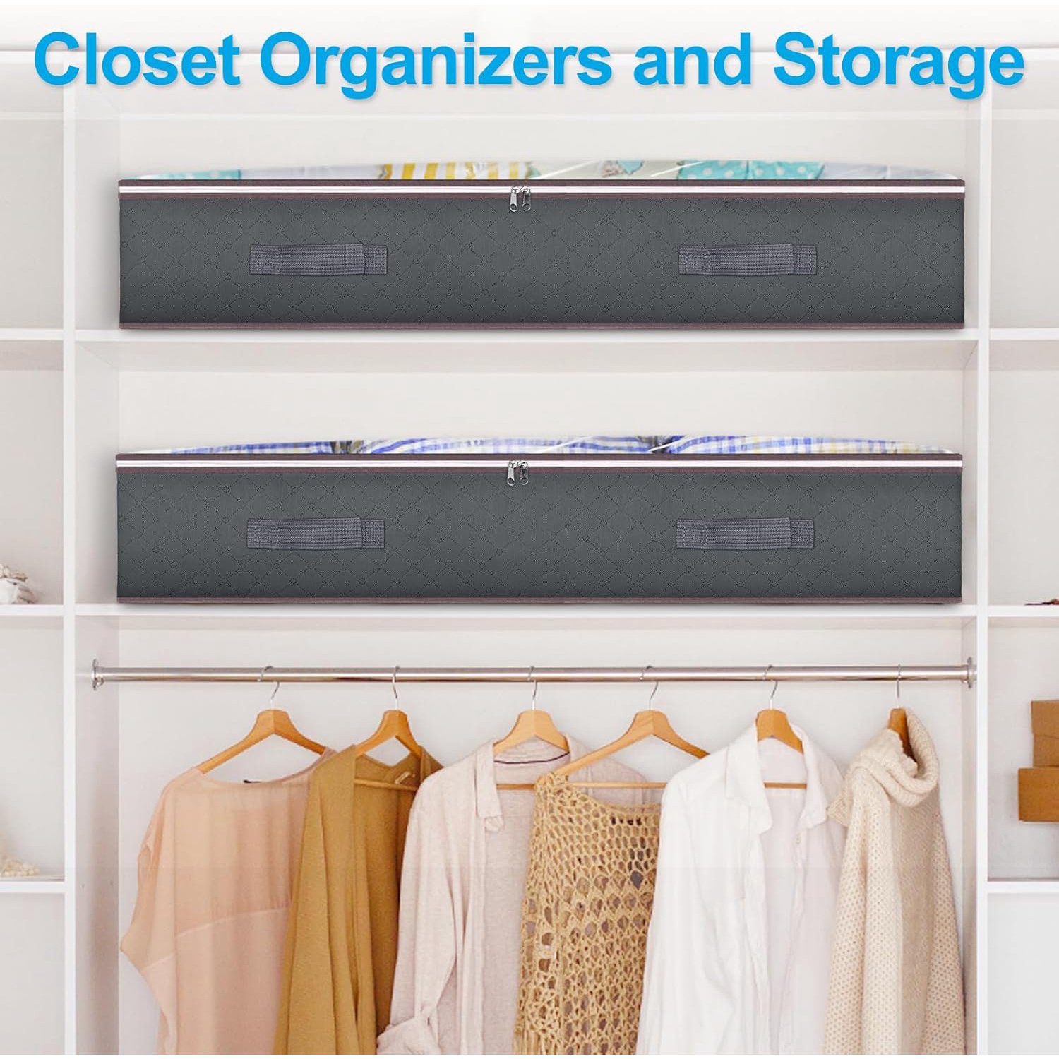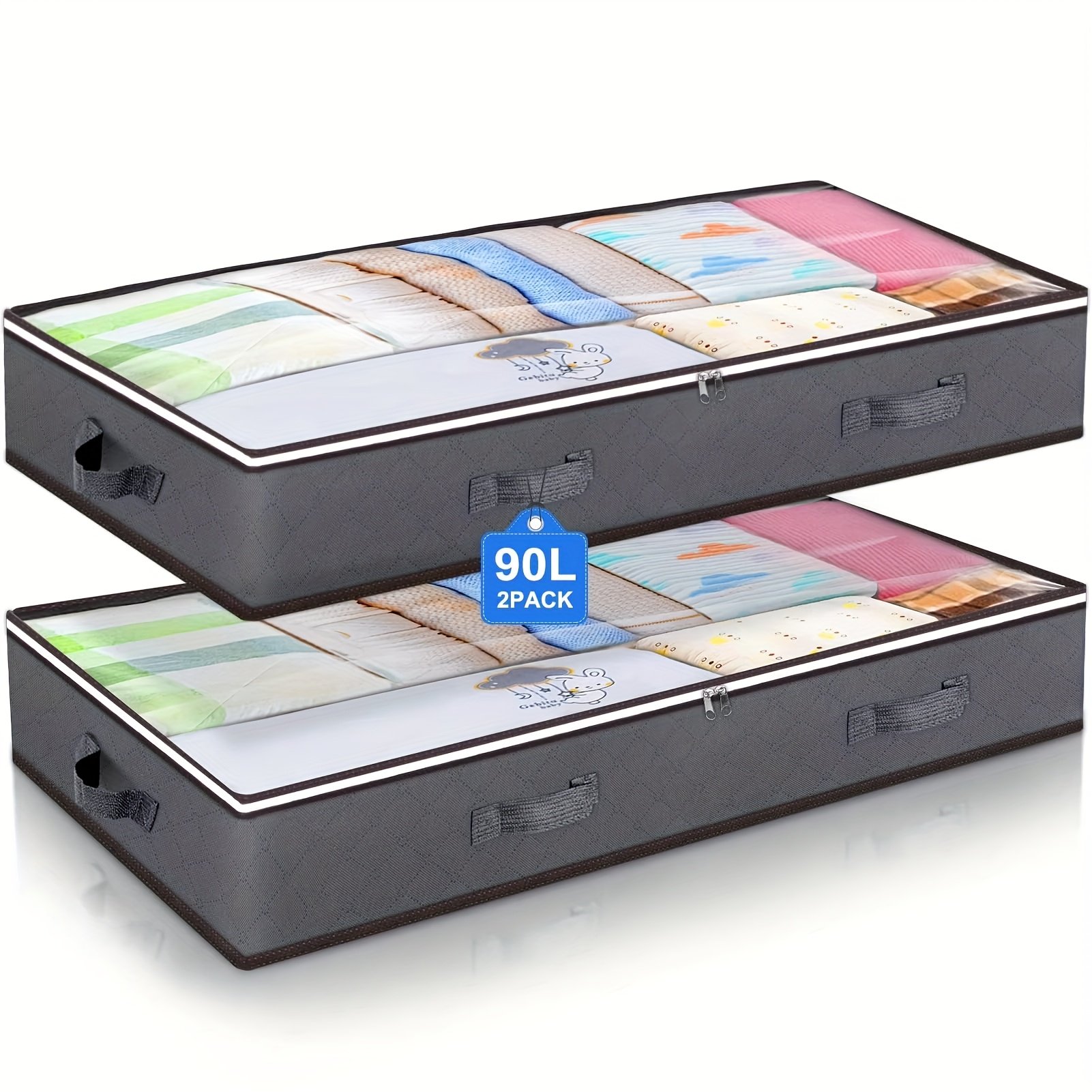 90L Under Bed Storage Containers, Closet Organizers and Storage Bins, Foldable Underbed Storage Bags for Blanket, Clothing, Comforter, Sweaters, Pillows, Linen Sheets, Wrapping Paper, Grey