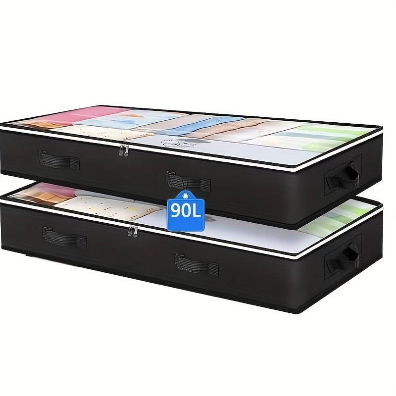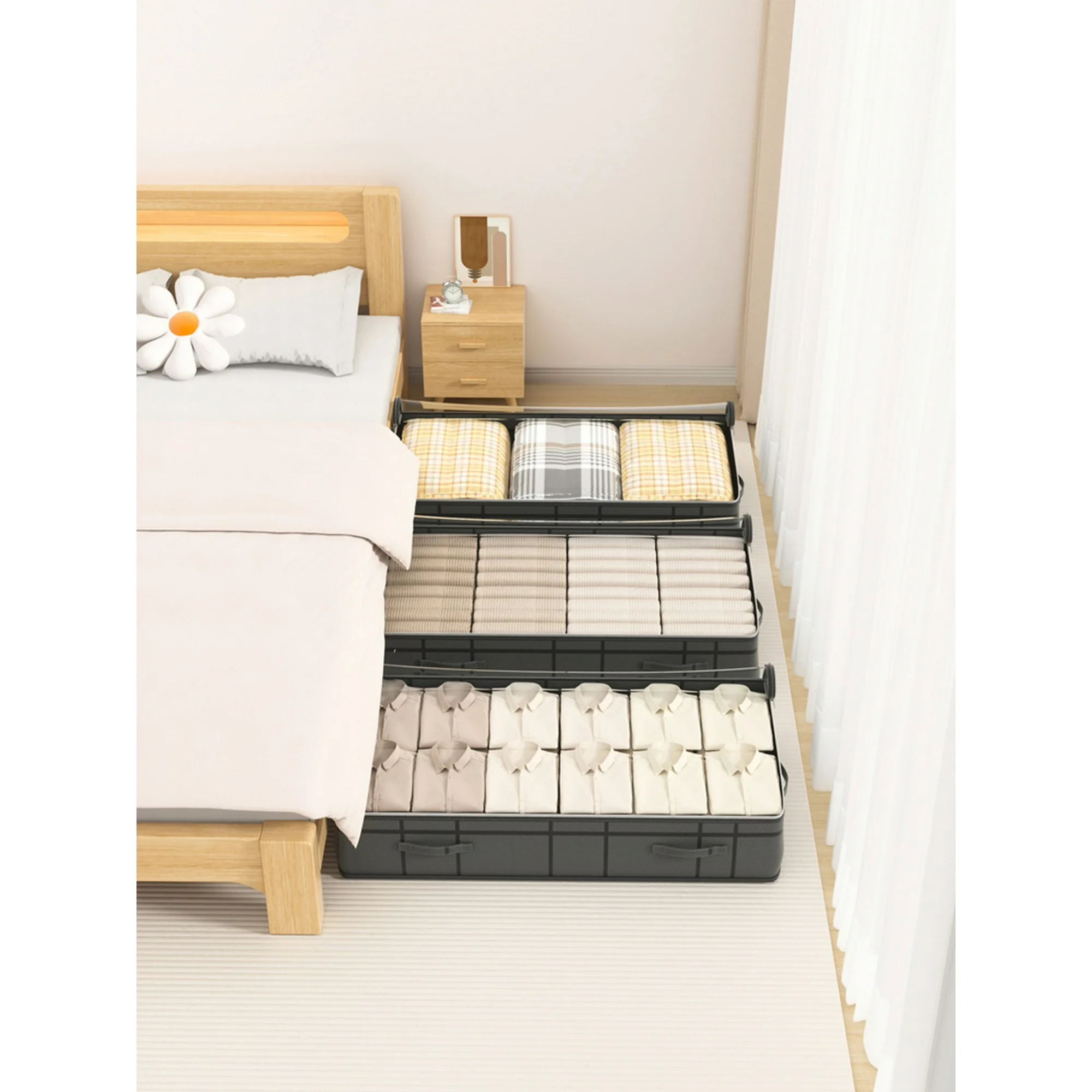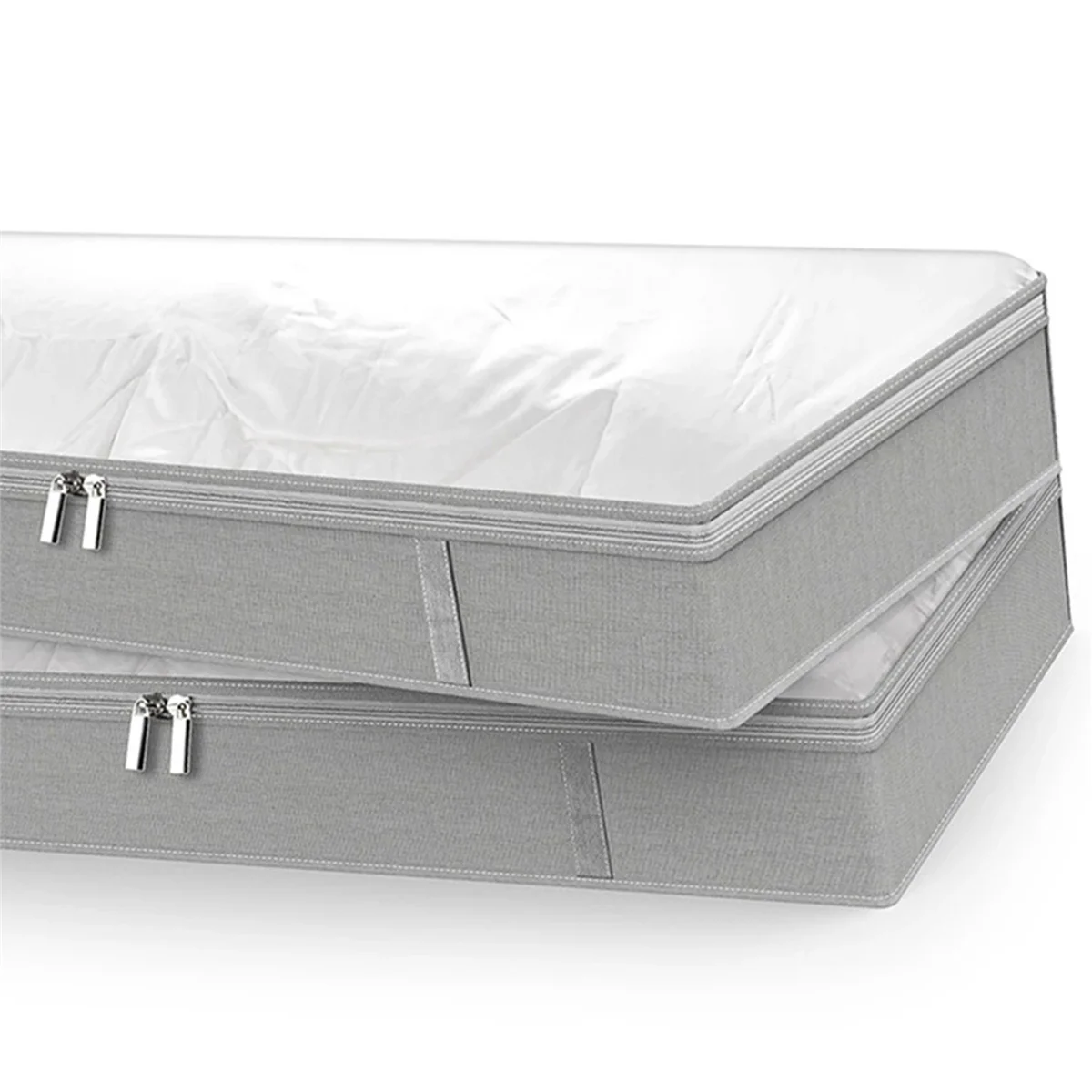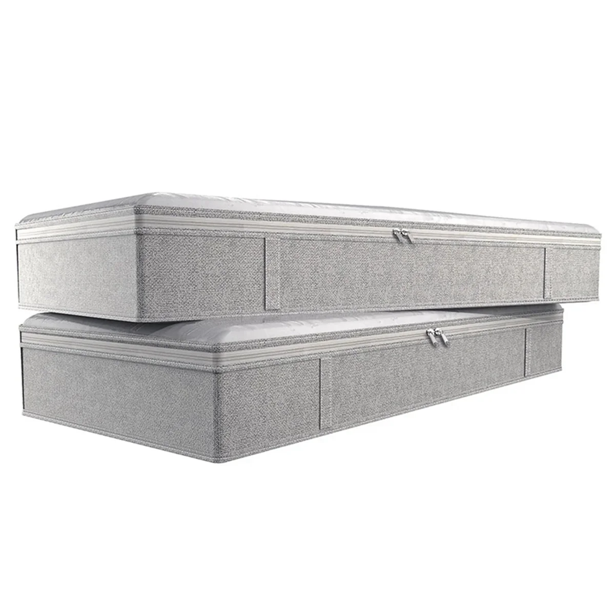[2pcs Heavy-Duty Underbed Bags] 2pcs Heavy-Duty Metal Underbed Storage Bags | Large Capacity Collapsible Dustproof Garment & Quilted Bedding Organizers with Handles, Classic Rectangular Design