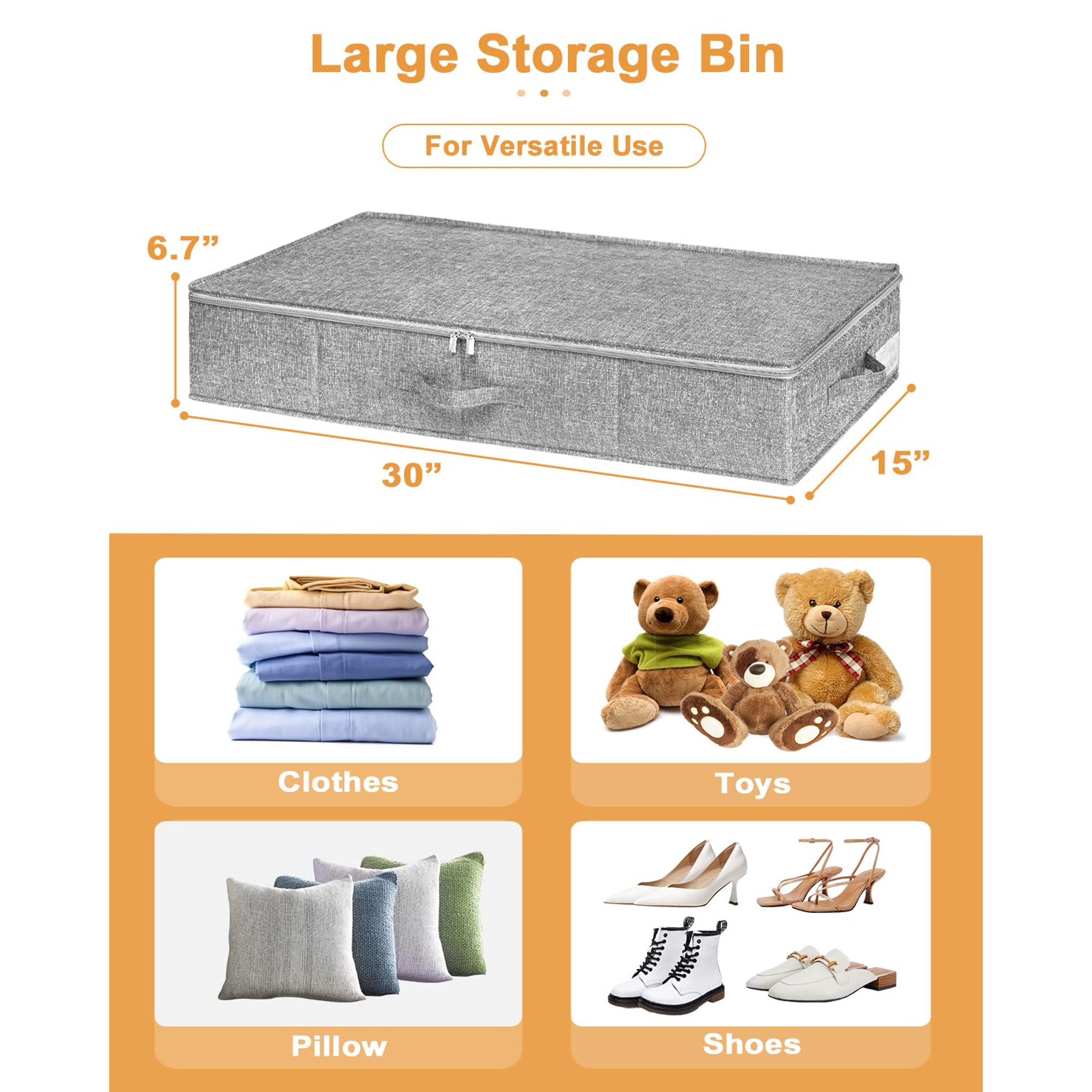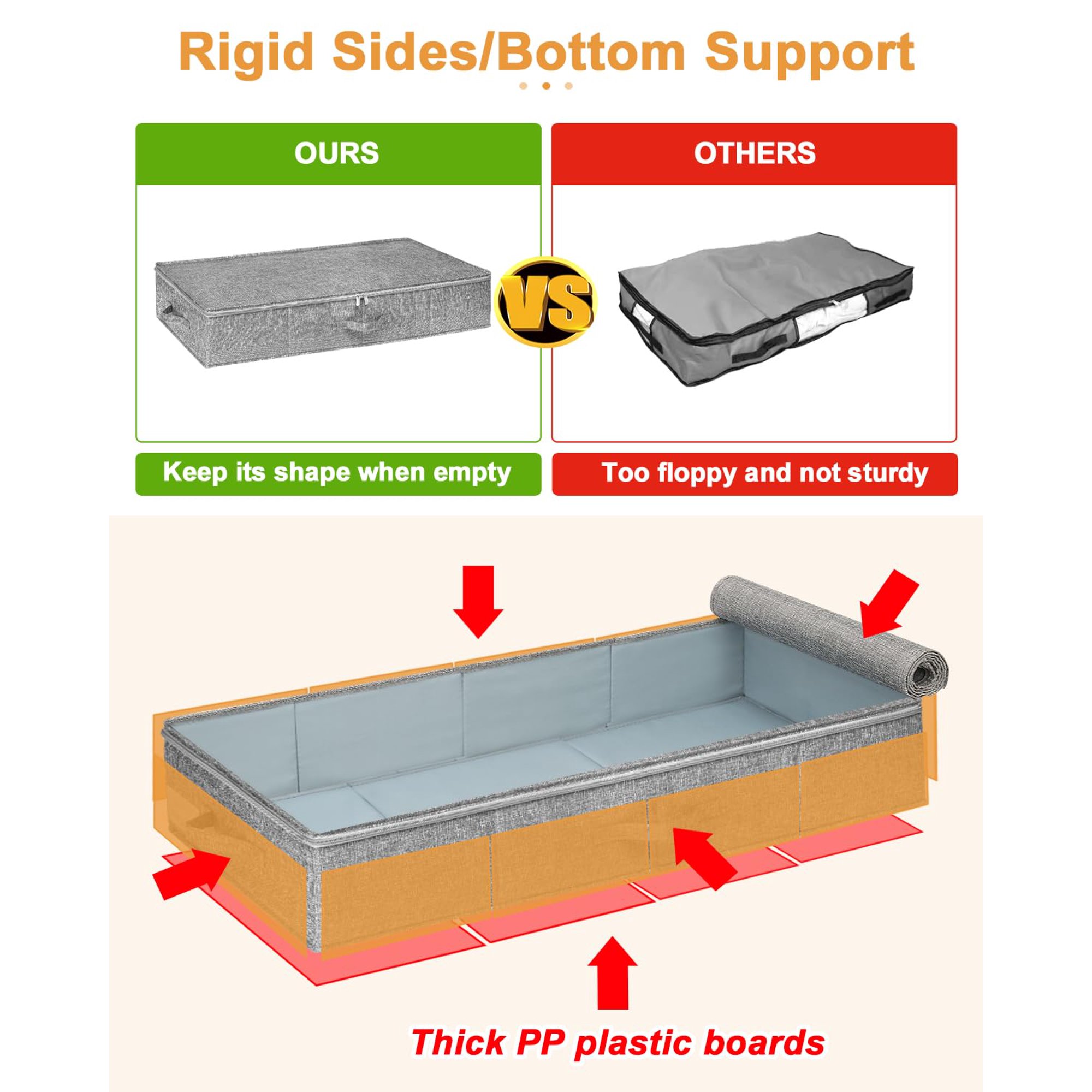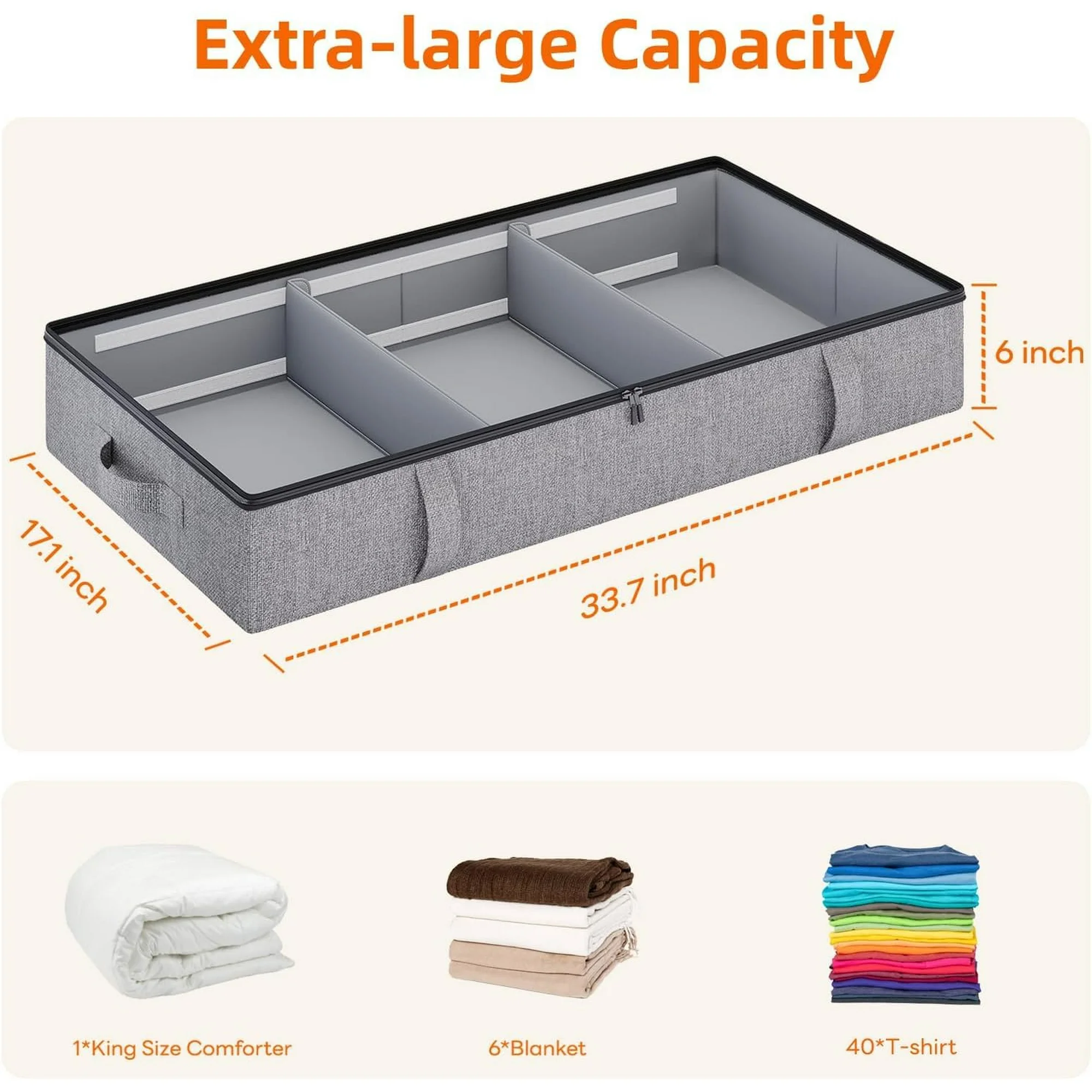 Under Bed Storage, 2 Pack Under Bed Storage Containers with Dividers, Firm Sides, Strong Zipper, 3 Reinforced Handles, 6 Inches Low Profile Underbed Storage Bins for Clothes, Blankets, Grey