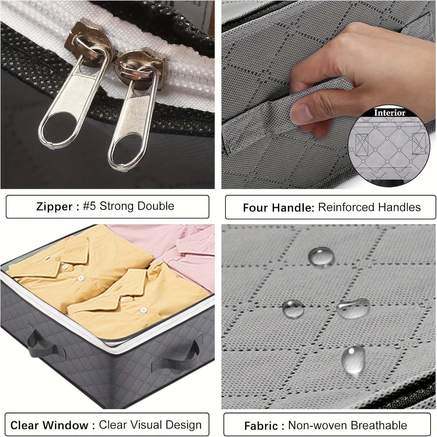 4 Pack Under Bed Storage Containers - Large Capacity Foldable Fabric Bins with Clear Window - Classic Rectangular, Multi-Purpose for Bedroom Organization & Storage
