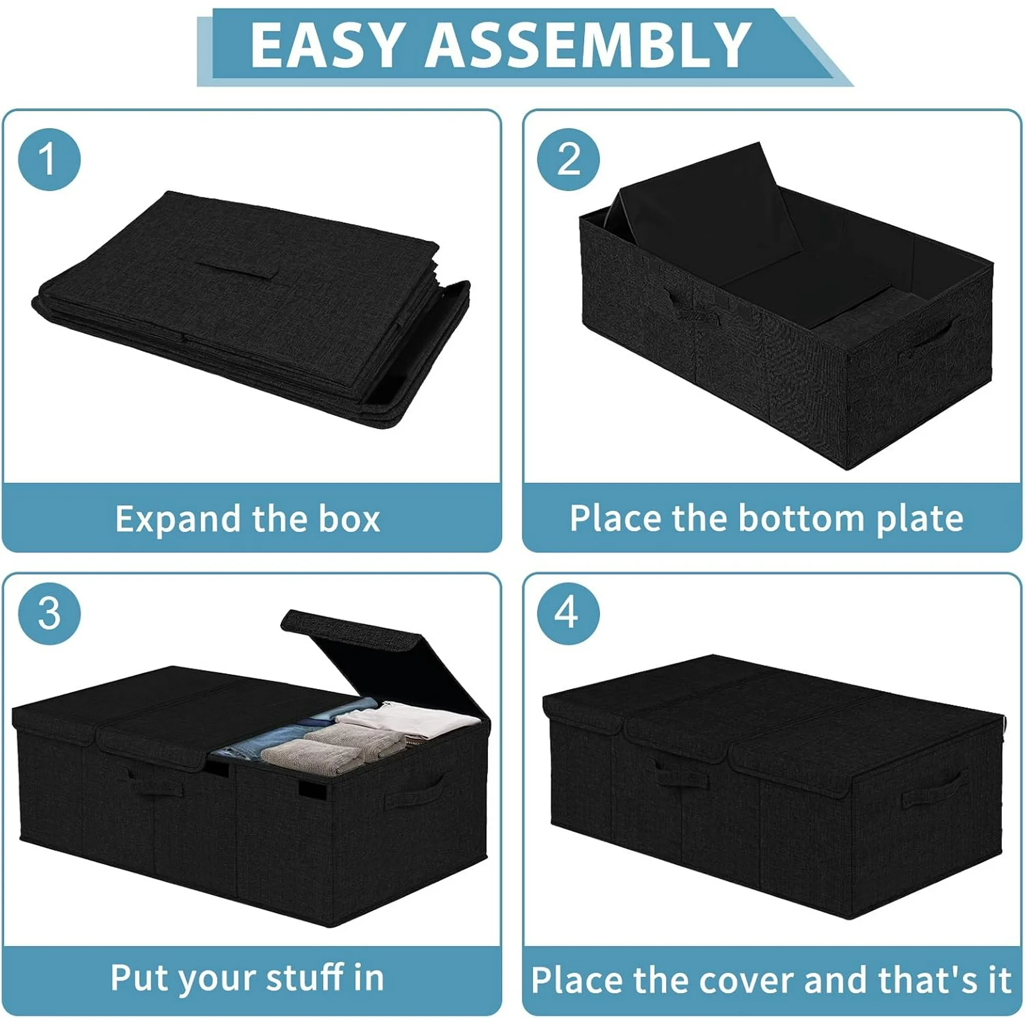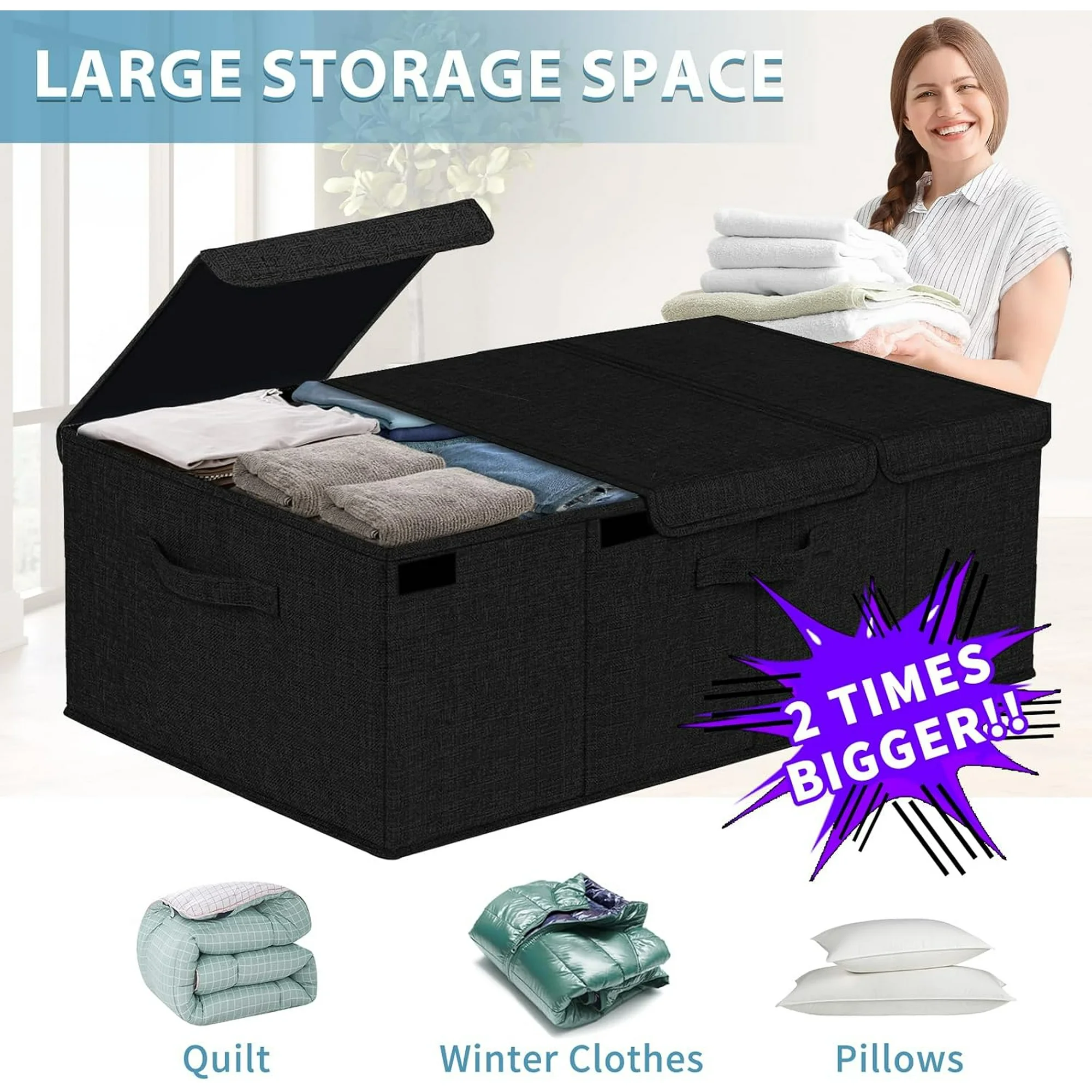Deep Under Bed Storage Container, 10 Tall Height Underbed Box Bin with Lids 31 Long Large Basket for Under Bed, Bedroom, Dorms, Clothes, Bed sheets, Blankets, 2 Pack, Black