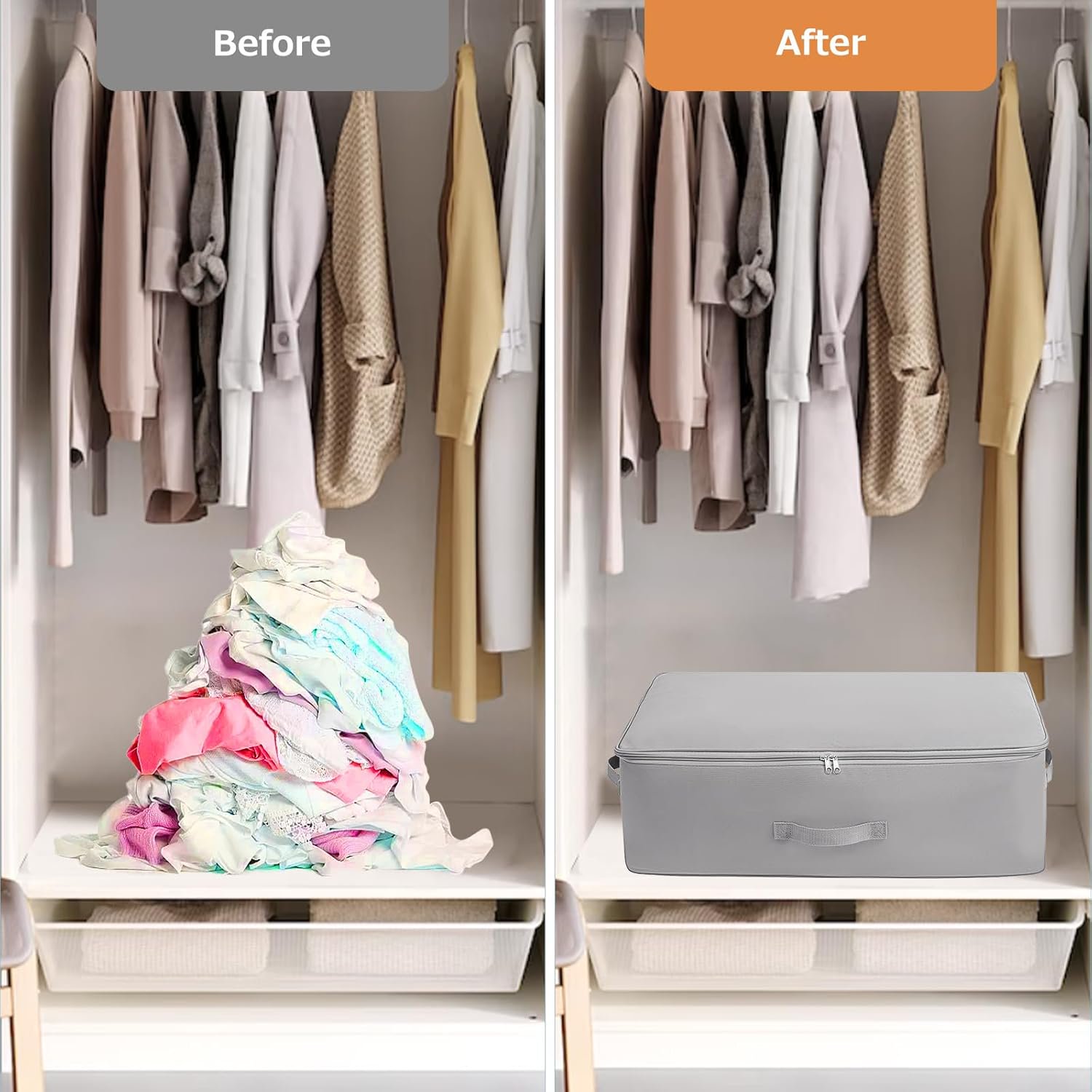 dxynlzq HCOCM Clothing Storage Bags Clothes Organizer with Reinforced Handle Foldable Under Bed Storage Bags for Blankets Comforters Quilt Bedding Pillow Toy 3Pcs Gery