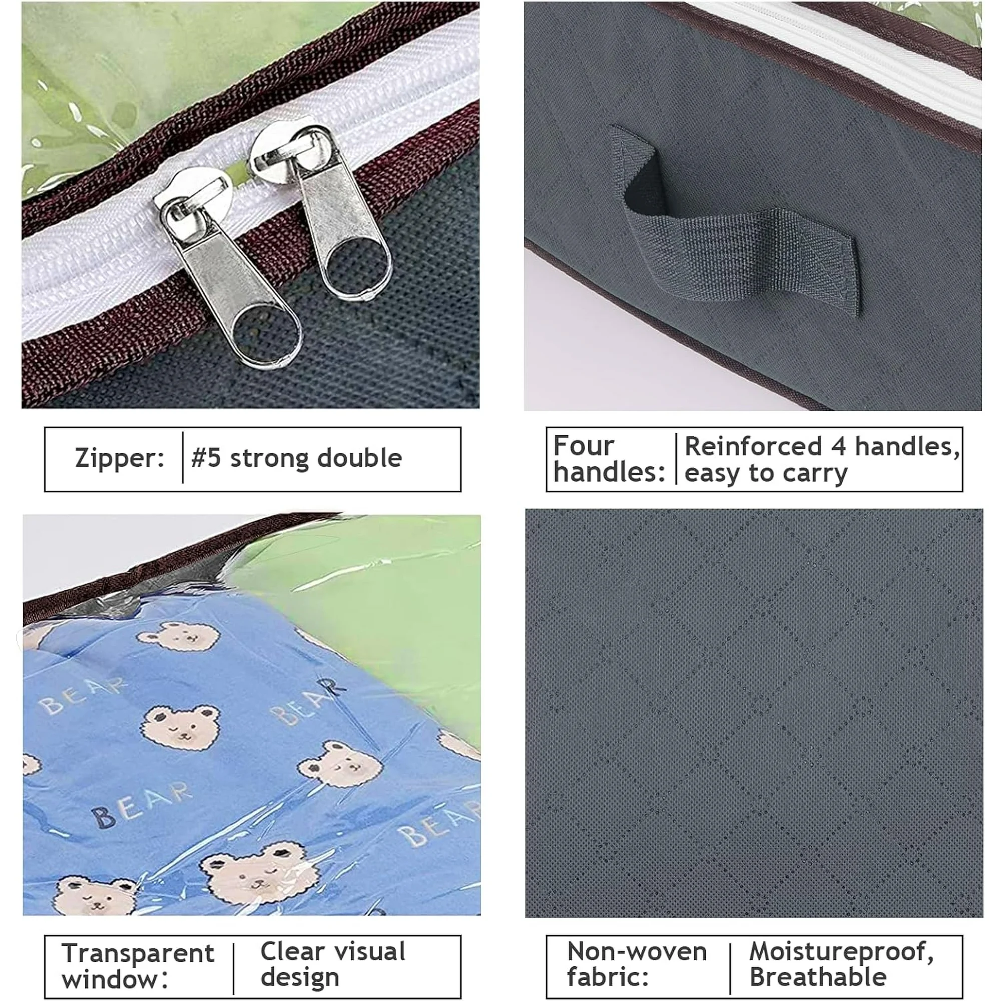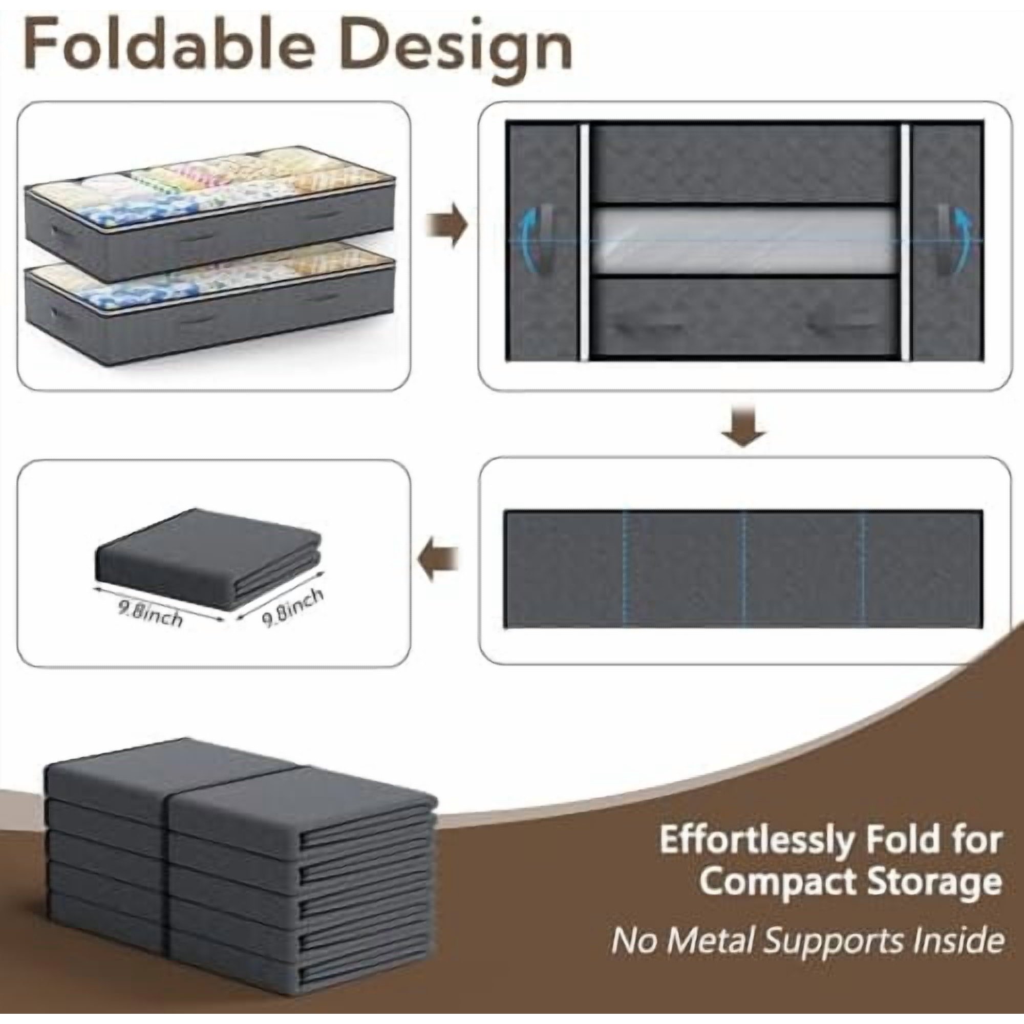 10 Pack Under Bed Storage Containers 90L Underbed Closet Organizer System Collapsible Storage Bins with Clear Window and Reinforced Handles for Bedding Pillows Blanket Towels Clothes Wardrobe Bedroom
