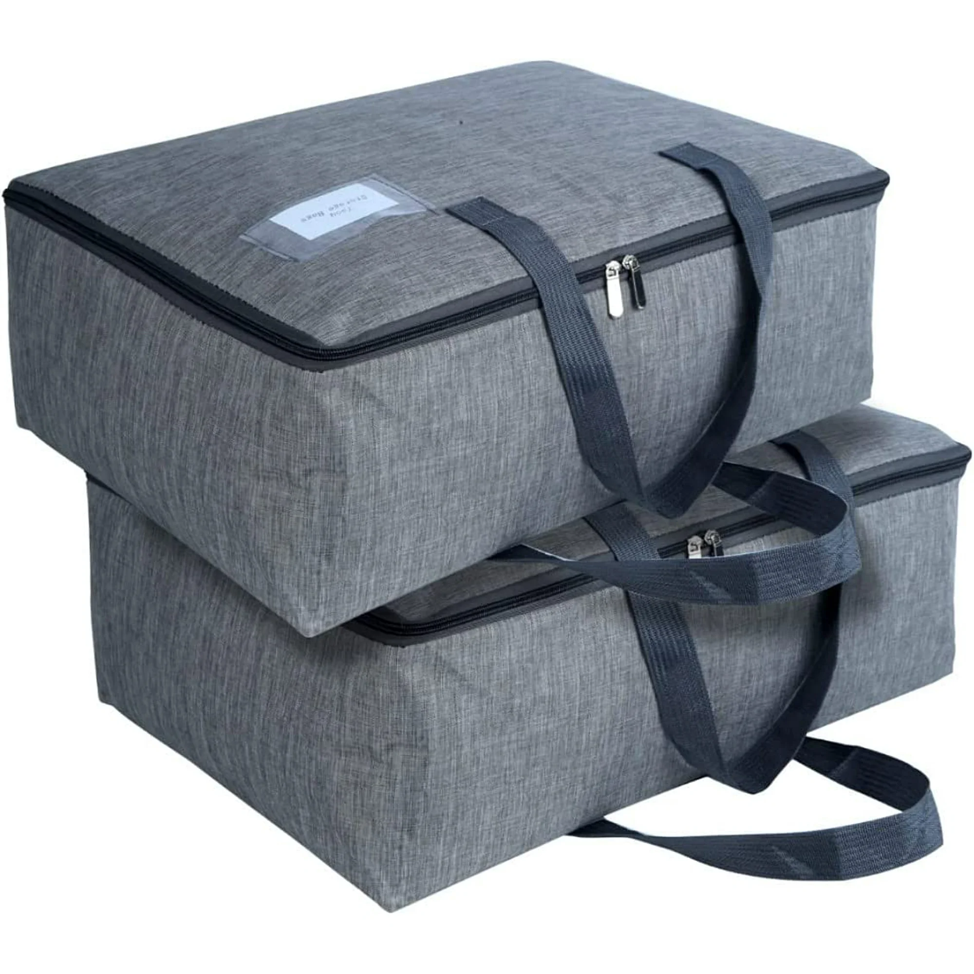 2 Pack Large Moisture-Proof Storage Moving Travel Bag for Comforter Pillow Blanket Quilt Bedding Clothes/Water-Resistant Linen Fabric/Storage Container for Closet Under-Bed