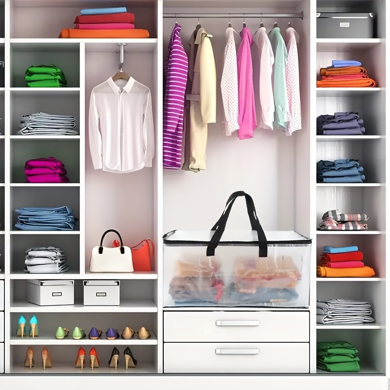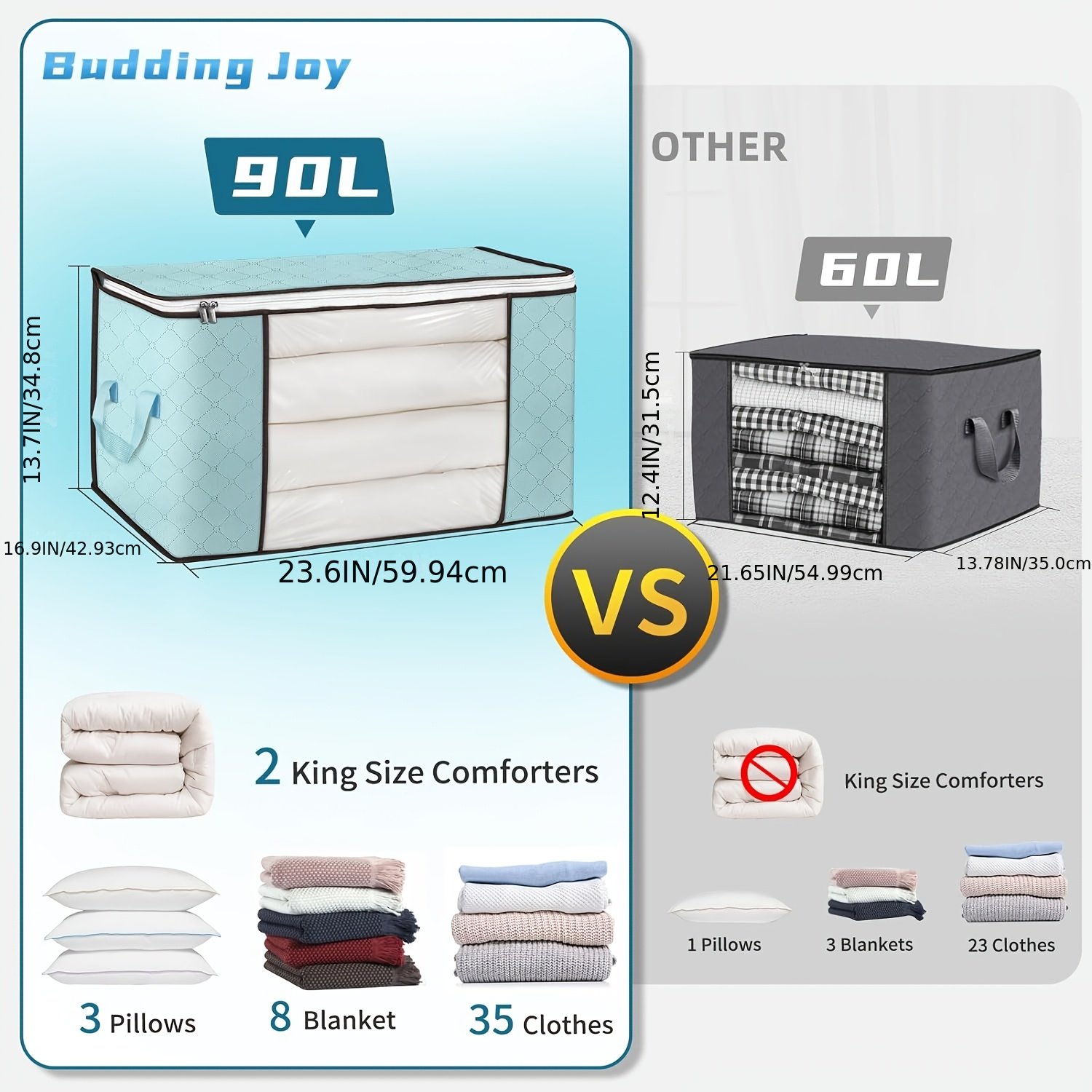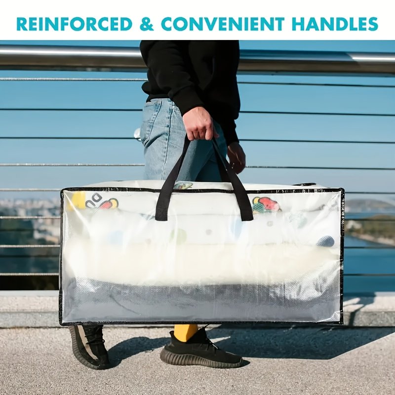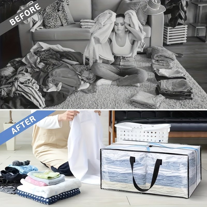 80L Clear Large Storage Bag, Clothes Storage Containers for Organizing Closet, Bedroom, Underbed, Comforters, Clothing, Blankets, Pillow, Foldable Organizer with Sturdy Handle and Zippers (4)