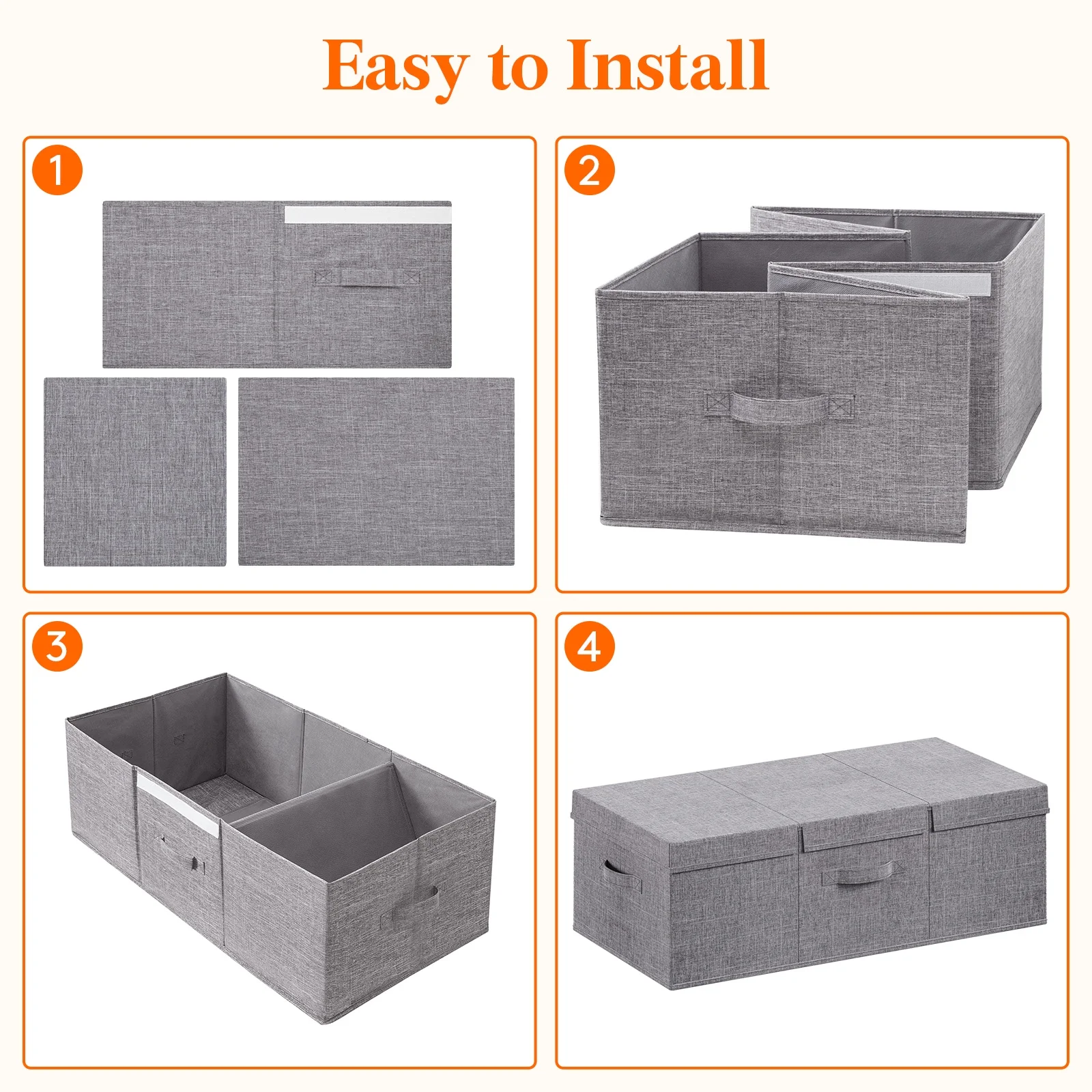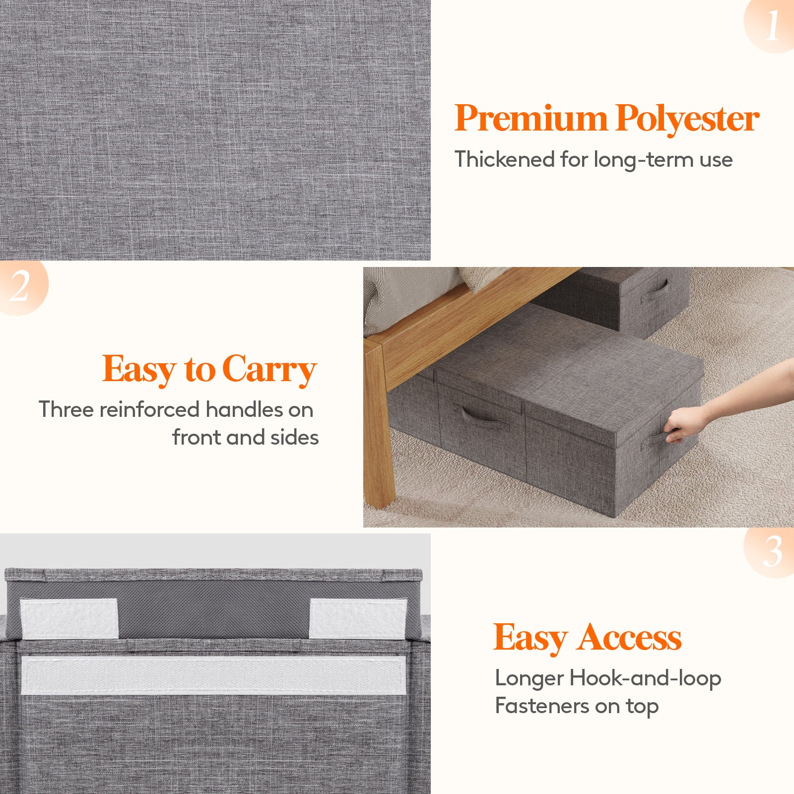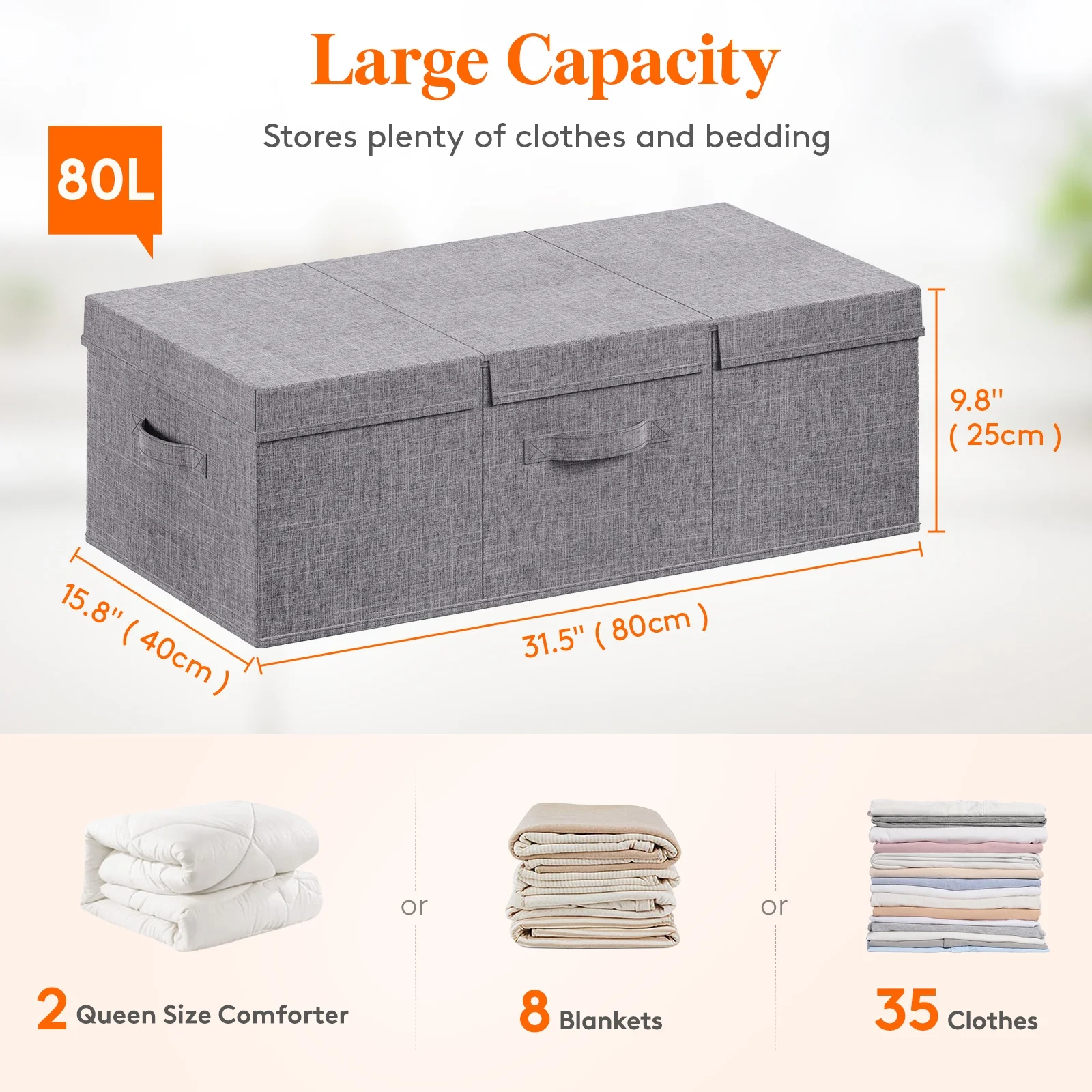 80L Under Bed Storage Containers, 9.8 Inch Tall Underbed Clothes Storage Organizer Bin with Sturdy Sidewalls, Bottom, 3 Lids, Deep Storage Drawer for Clothes, Shoes, Blankets, Pillows 3 Pack