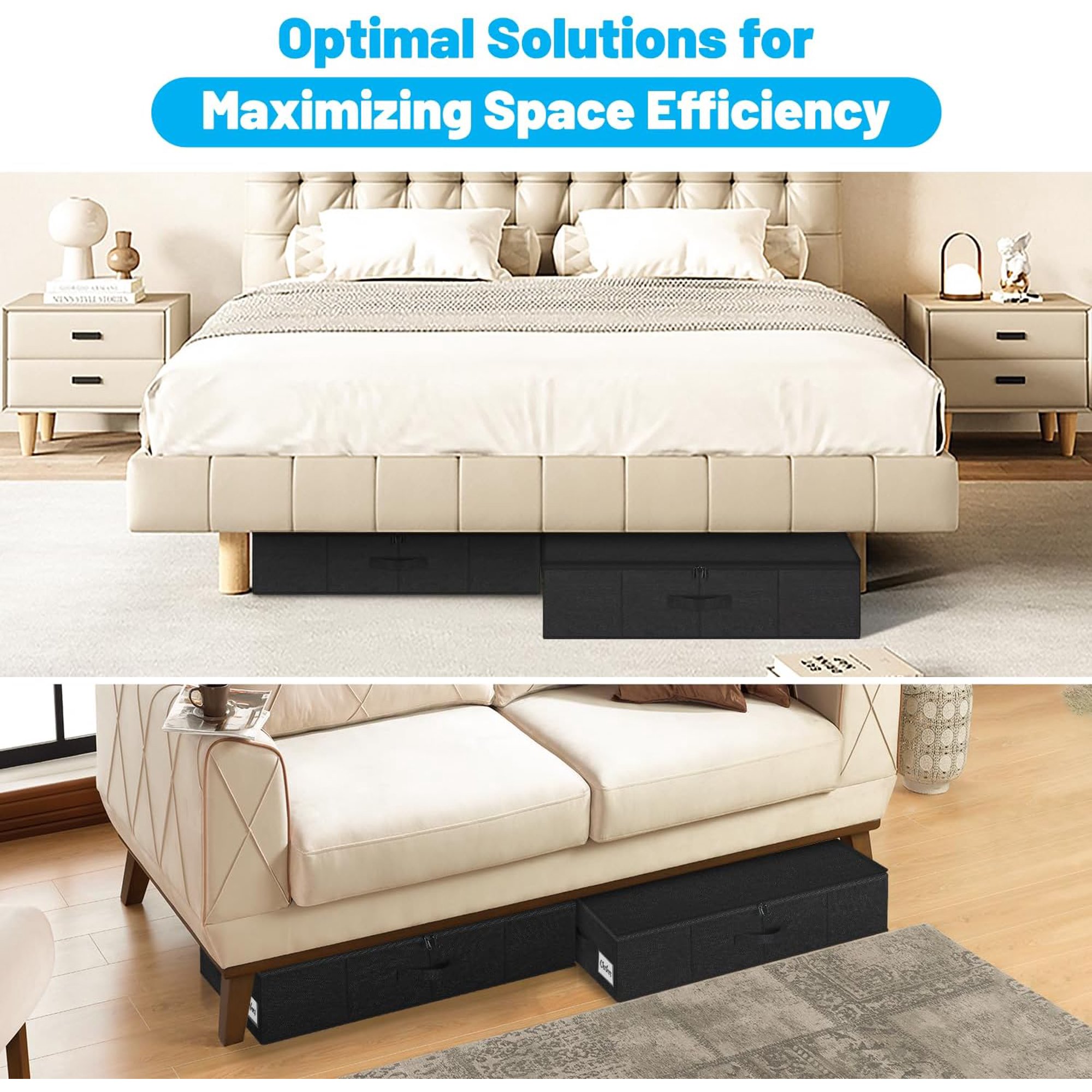 Under Bed Storage Container Bin 2 Pack, Low Profile Foldable Underbed Clothes Storage Organizer W/ Ultra Thick Fabric and Sturdy Bottom/Sides, Dual Zipper Storage Box for Dorm and Home 30x15x6.7