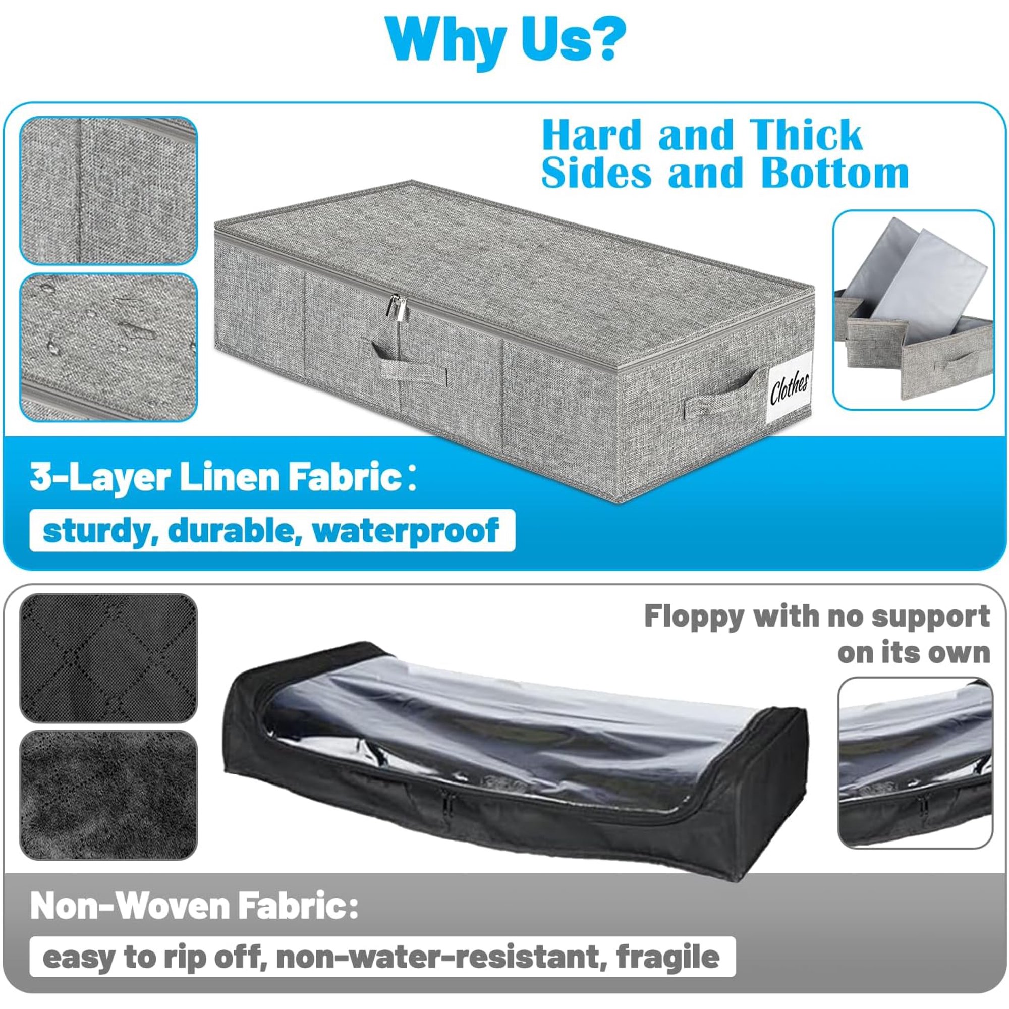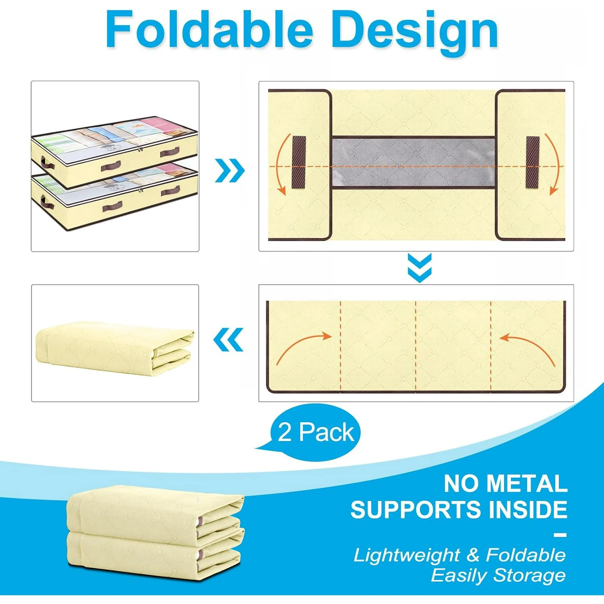 UM 90L Under Bed Storage Containers,Underbed Toy Organizers and Clothing Storage Bags,Closet Storage Bins with Clear Window for Organizing Blanket Comforter Bedding Clothes Bedroom Dorm, 2 Pack Beige