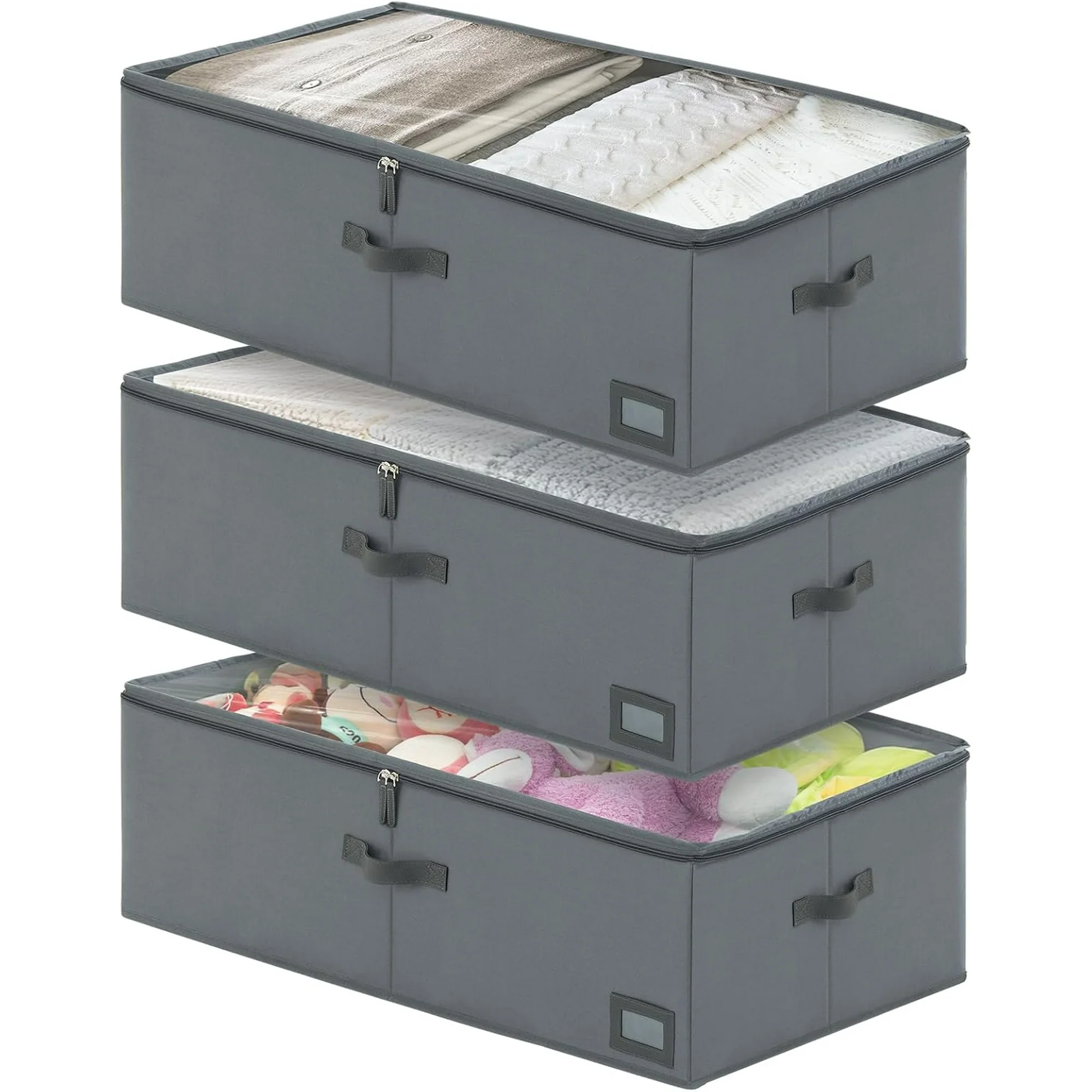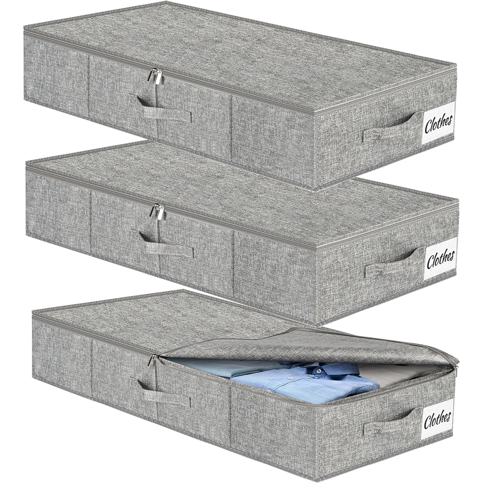 Under Bed Storage Container Bin 3 Pack, Low Profile Foldable Underbed Clothes Storage Organizer W/ Ultra Thick Fabric and Sturdy Bottom/Sides, Dual Zipper Storage Box for Dorm and Home 30x15x6.7