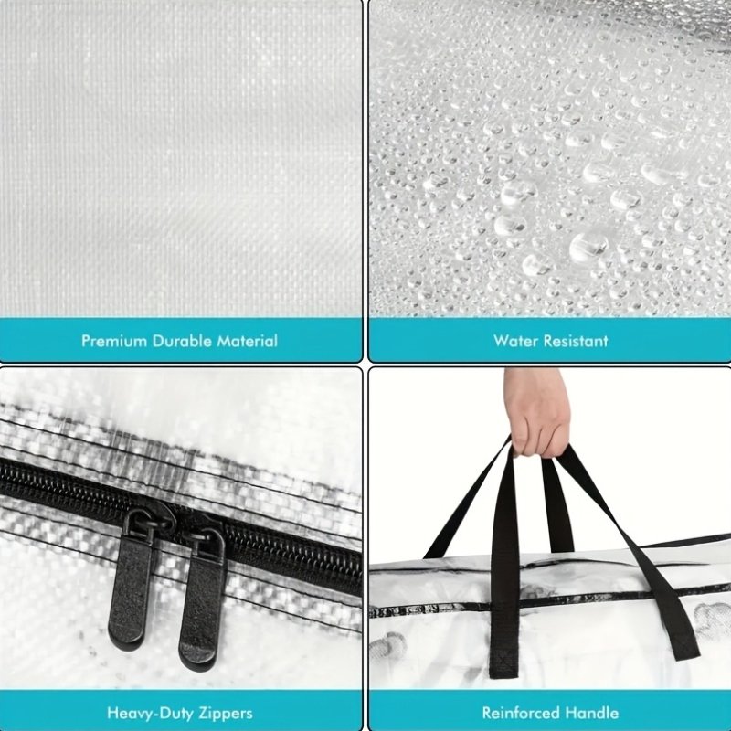 4/8pcs Clear Plastic Storage Bags, Rectangle Contemporary Multipurpose Storage Bags with Zipper Closure for Clothes, Quilts, Blankets, Travel, Camping, Garden Tools, Under-Bed Storage
