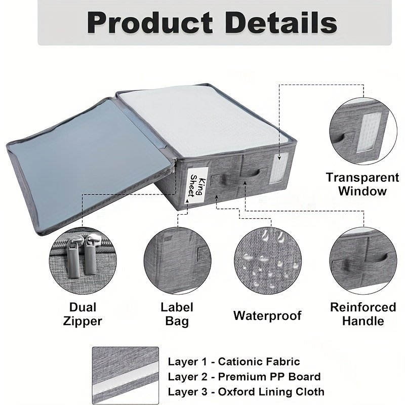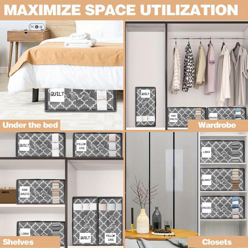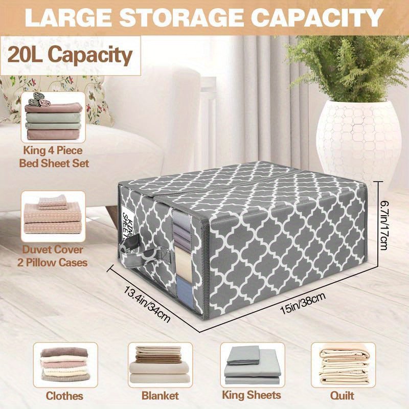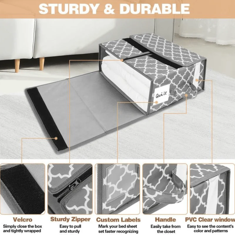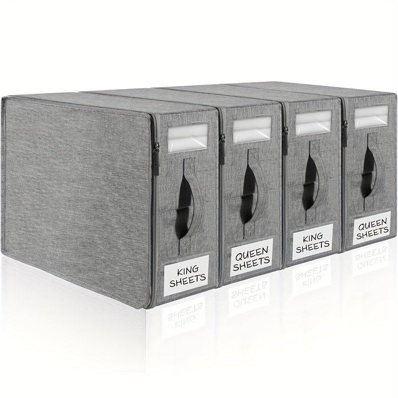 4-Pack Bed Sheet Organizers with Zipper & Window, Insect-Proof Storage Bags with Handle & Label for Sheet Sets, Duvet Covers & Seasonal Clothing, Under-Bed Closet Organizer