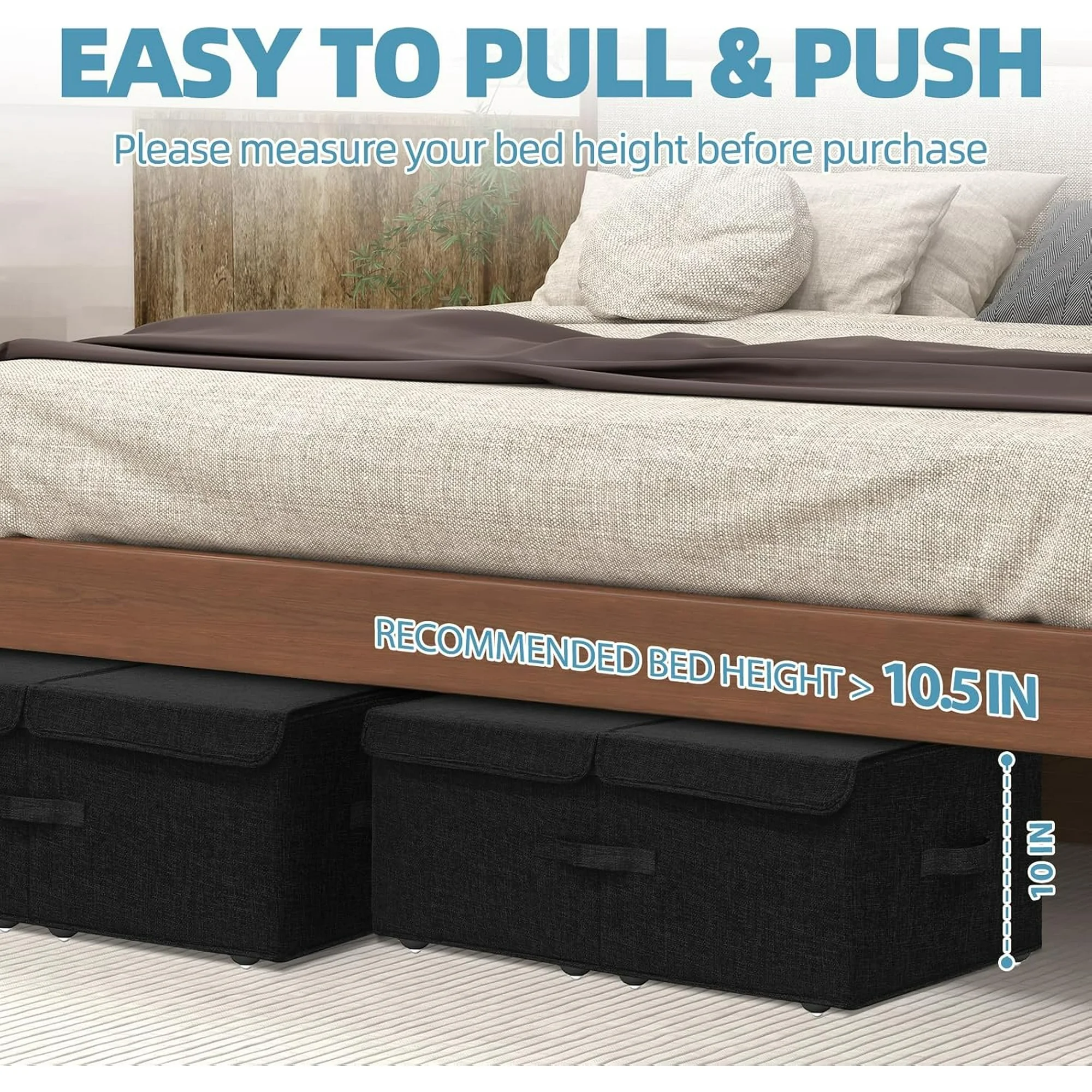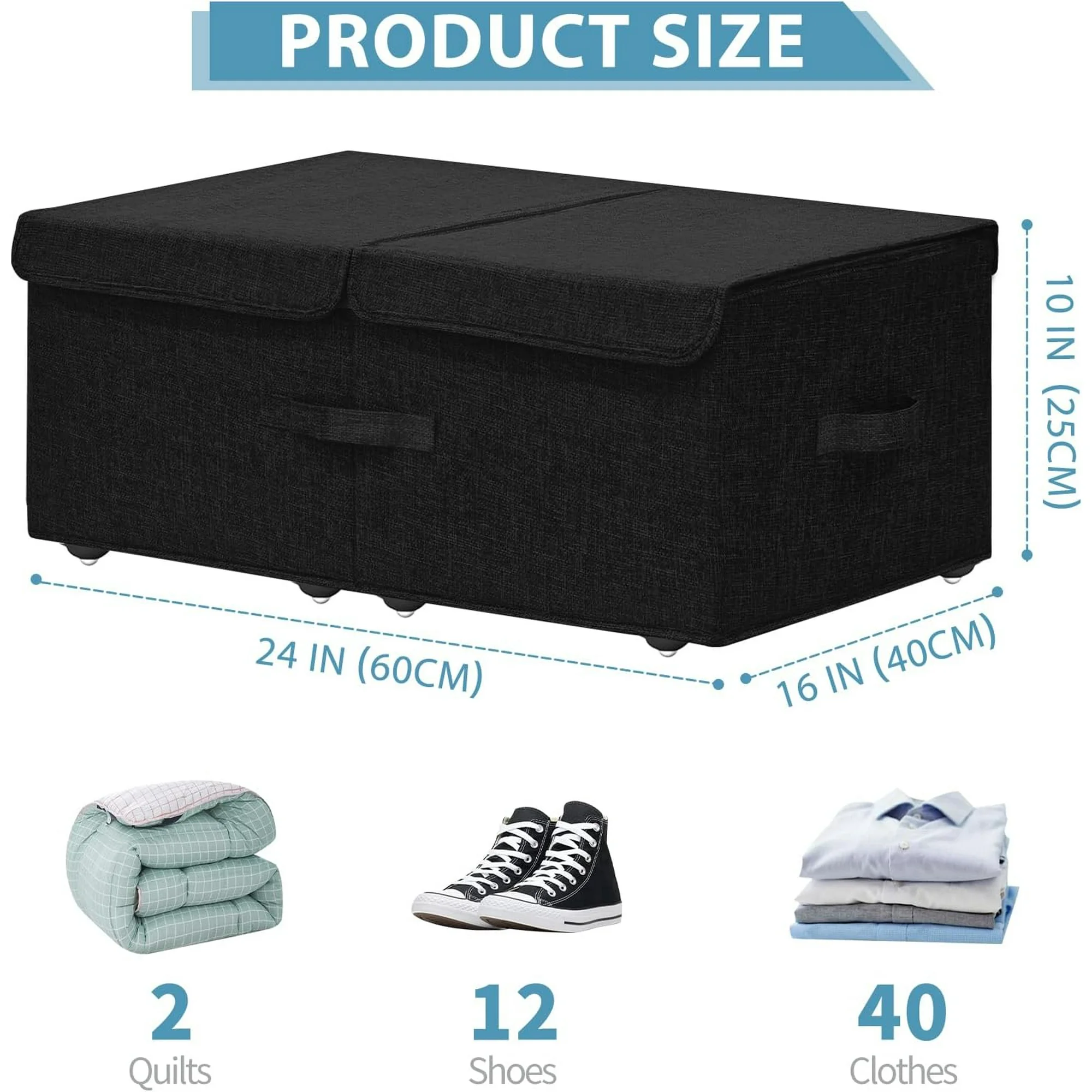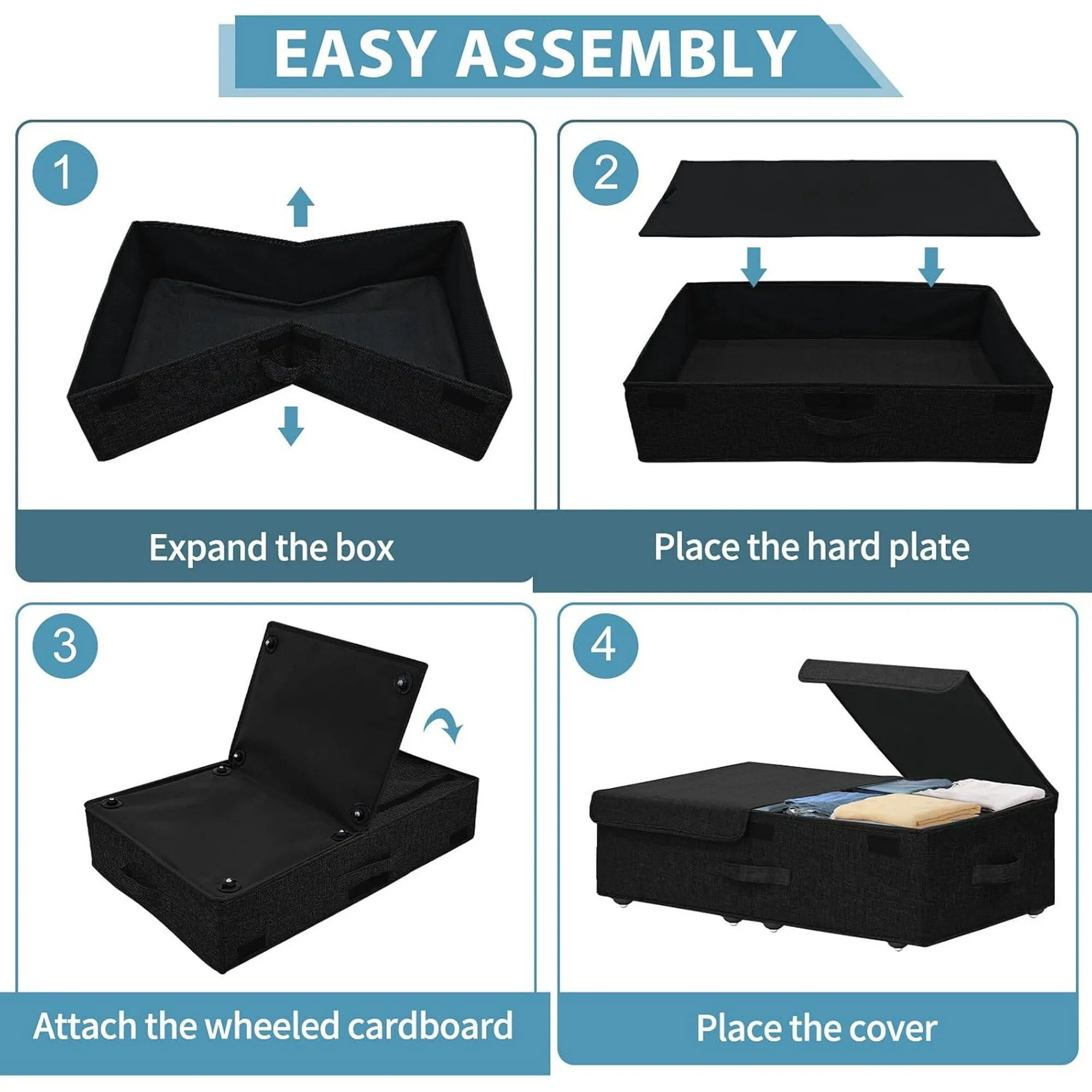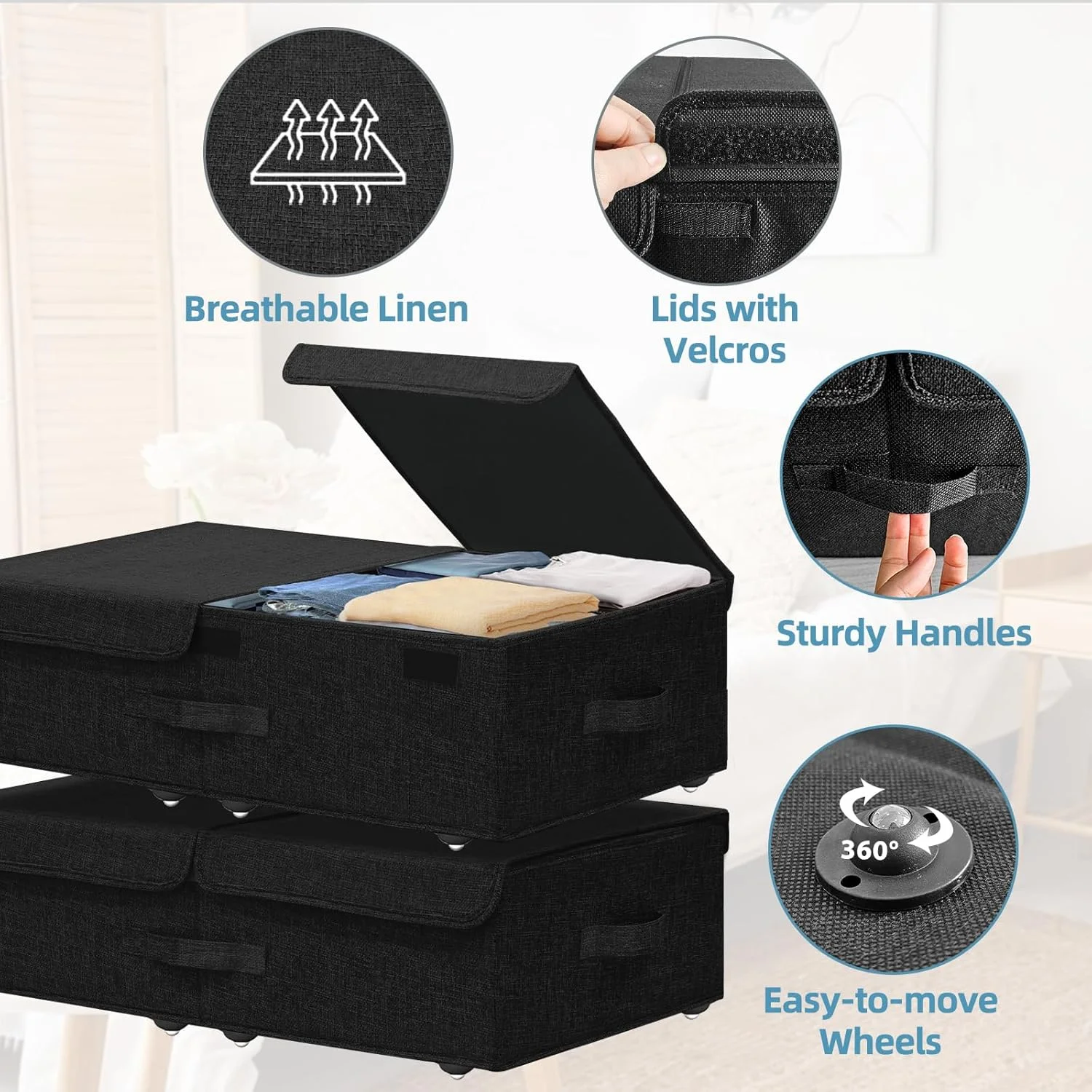 Under Bed Storage Containers,2 Pack Foldable Underbed Storage Containers with Handles and Wheels,Folding Bed Shoes Clothes Organizer,Easy Assembly Underbed Storage for Toy,Bedding,Bedroom(Black)